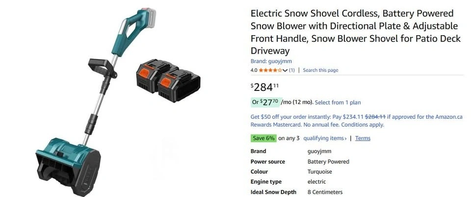 This is just the tool, no battery included. It's a powerful electric snow shovel that can clear a 30 cm wide x 8 cm deep pathway with a throwing distance of up to 65cm. You can easily adjust the snow throwing direction with the three-direction adjustable knob. It also features a foldable design for easy storage and is cordless, so you're not restricted by wires. Weighing only 4.5 kg, it's lightweight and can be operated with one hand. Feel free to message if you have any questions!