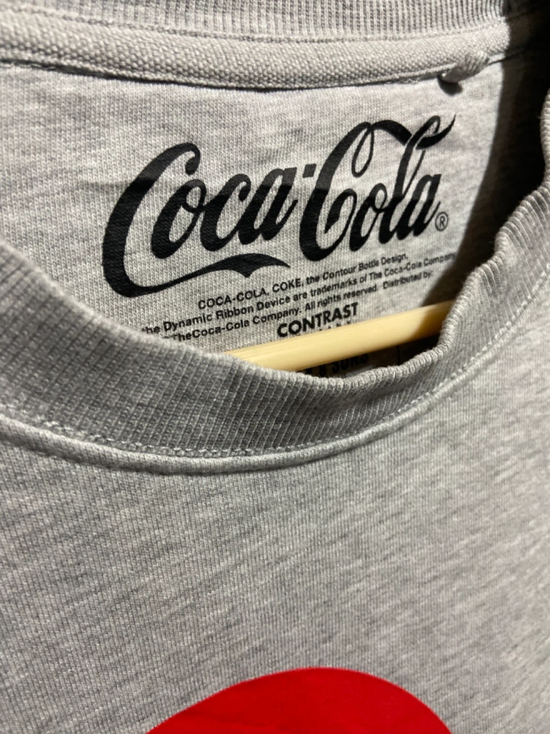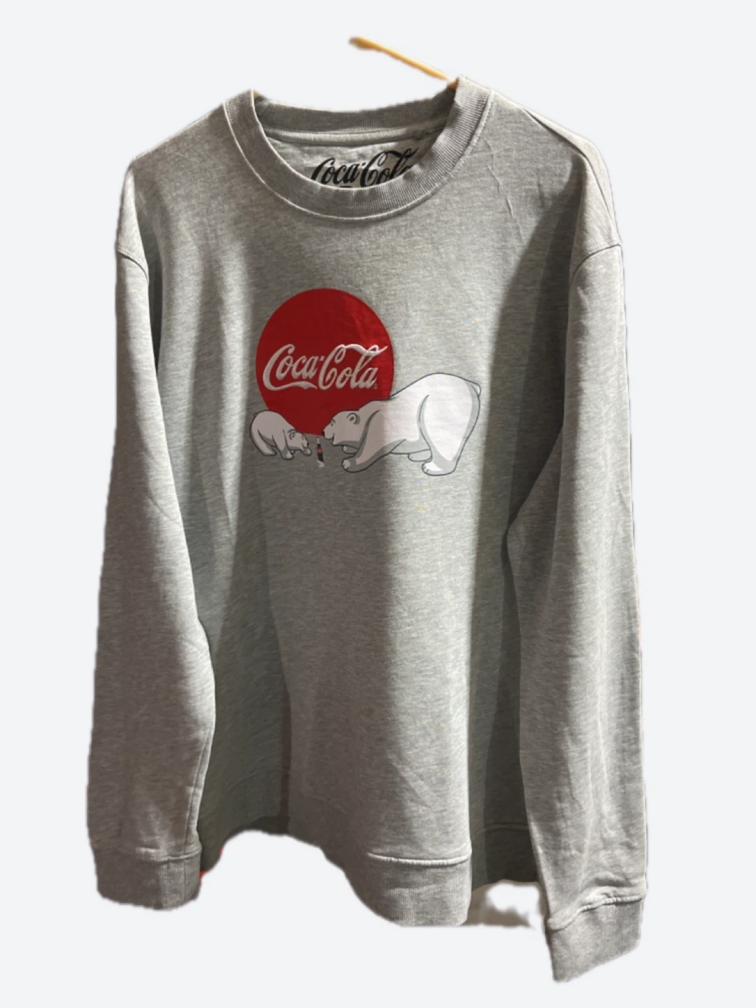 Cozy grey sweatshirt featuring the classic Coca-Cola logo and the adorable polar bears! It's distributed by Contrast Company and has a fun, vintage feel. In excellent condition.