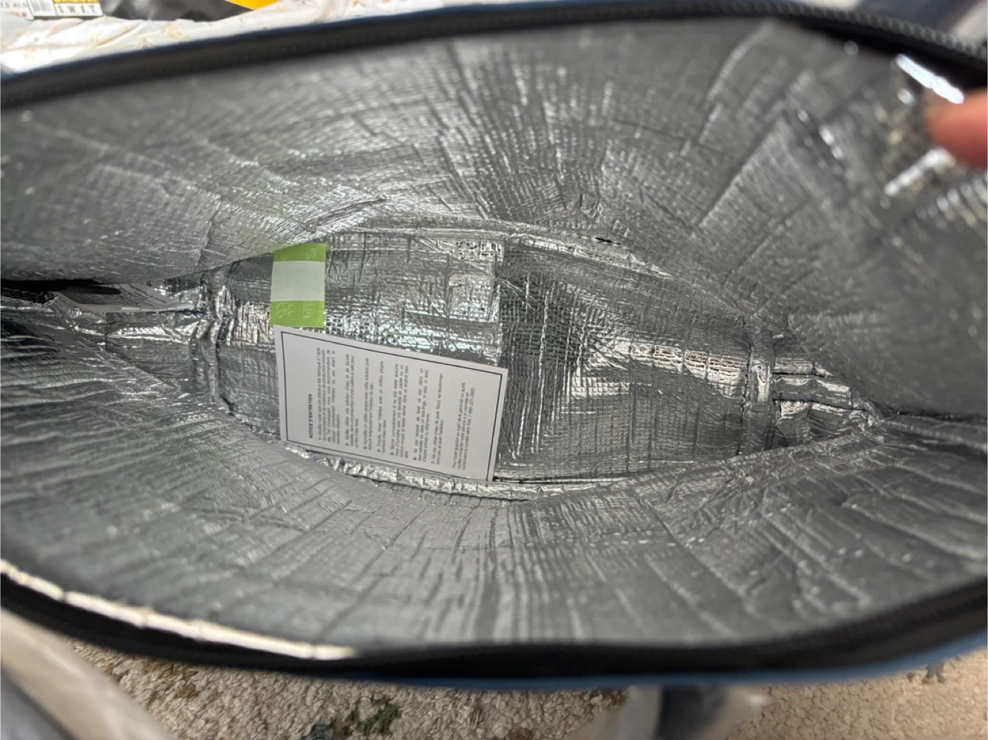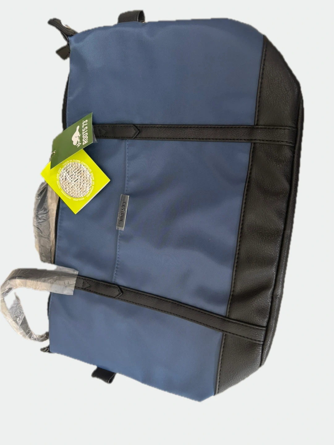 Brand new Roots 73 blue great as lunch bag or as purse stylish linning silver ! It features a blue nylon body with black faux leather accents 2 handles Perfect for school, work or travel