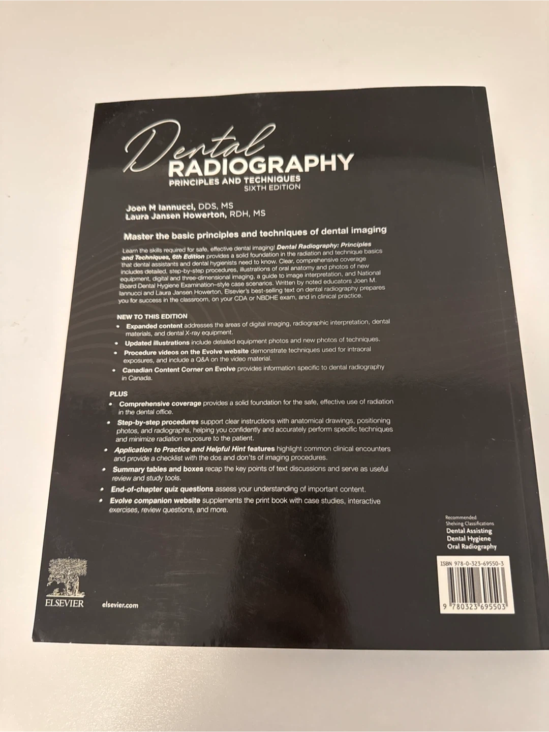 Selling the sixth edition of Dental Radiography Principles and Techniques by Joen M. Iannucci and Laura Jansen Howerton. This book covers the basic principles and techniques of dental imaging. It's a comprehensive guide for dental assistants and dental hygienists needing to know about oral anatomy and photos of new equipment, digital and three-dimensional imaging