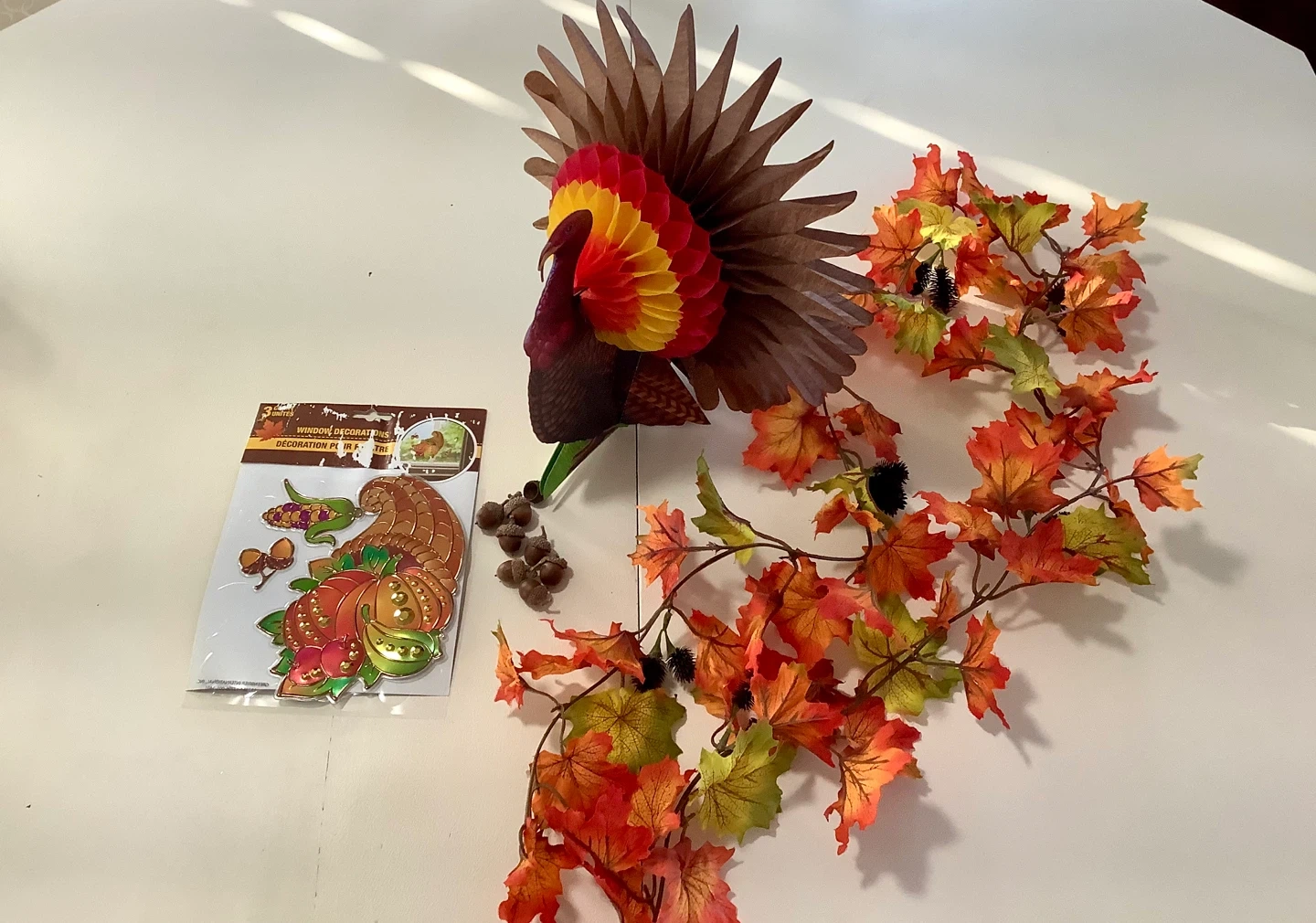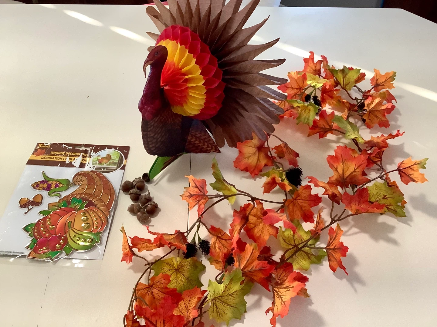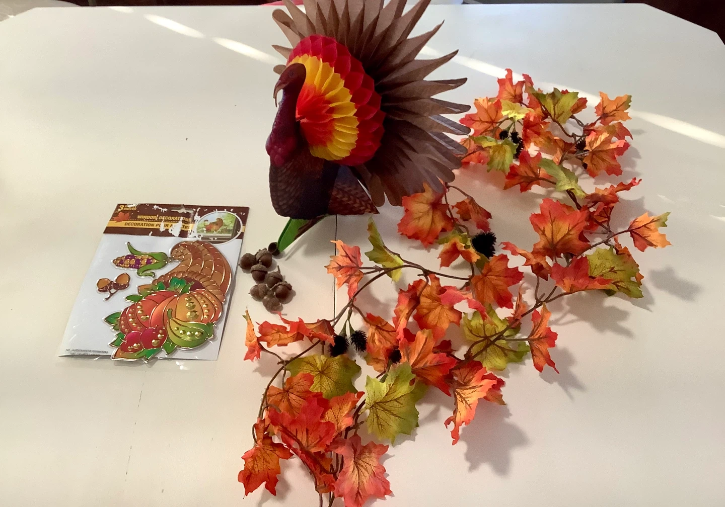 Getting ready for Thanksgiving? I have a cute bundle of decorations including a paper turkey, fall leaves garland, and window clings! All in great condition and ready to add some festive cheer to your home.