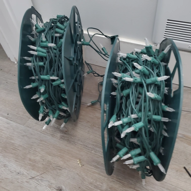 Selling a set of used Christmas string lights. They have a green wire and are perfect for adding a festive touch to your home this holiday season! They are in good condition and ready to light up your space four set, warm light, working fine , all for $50
