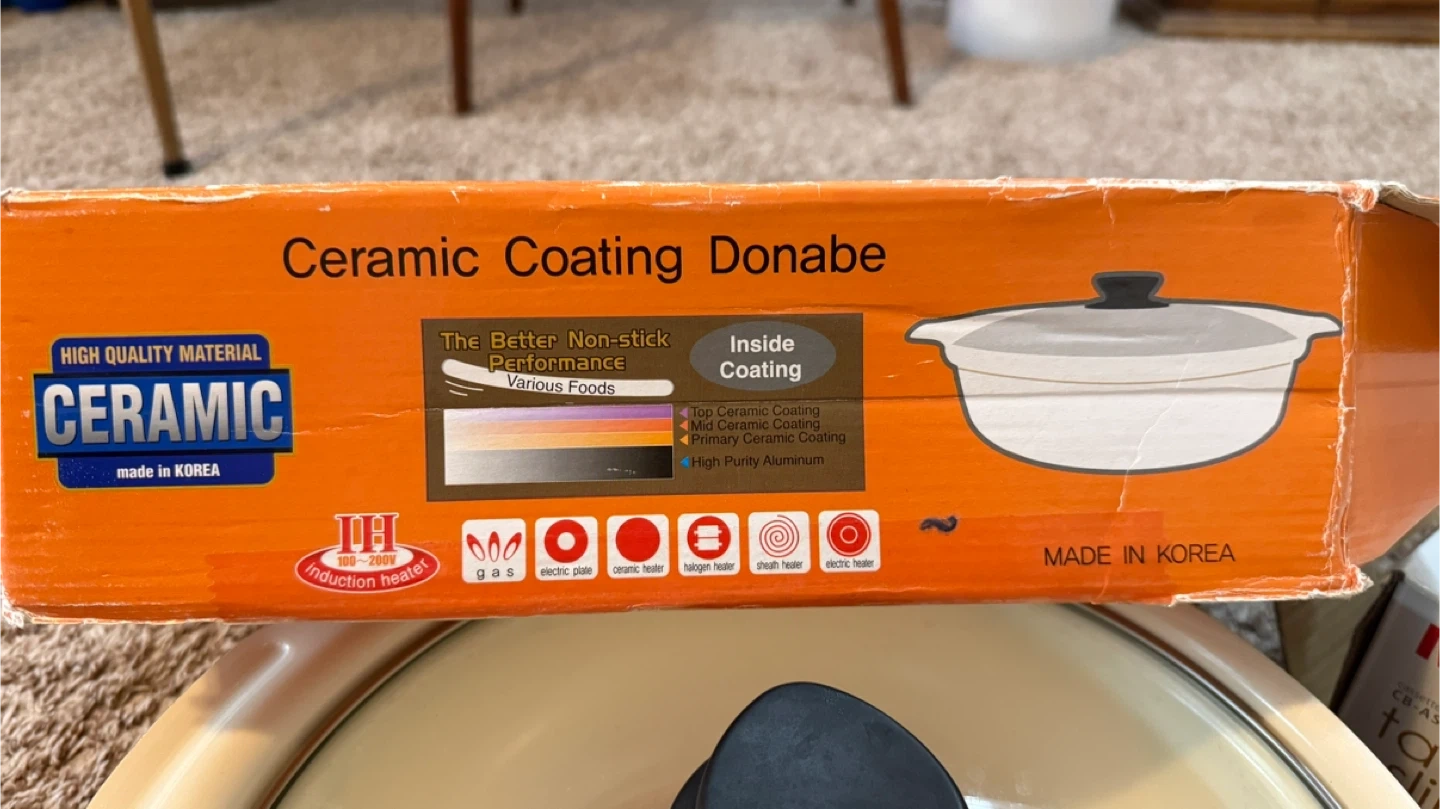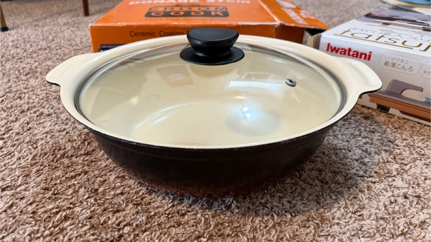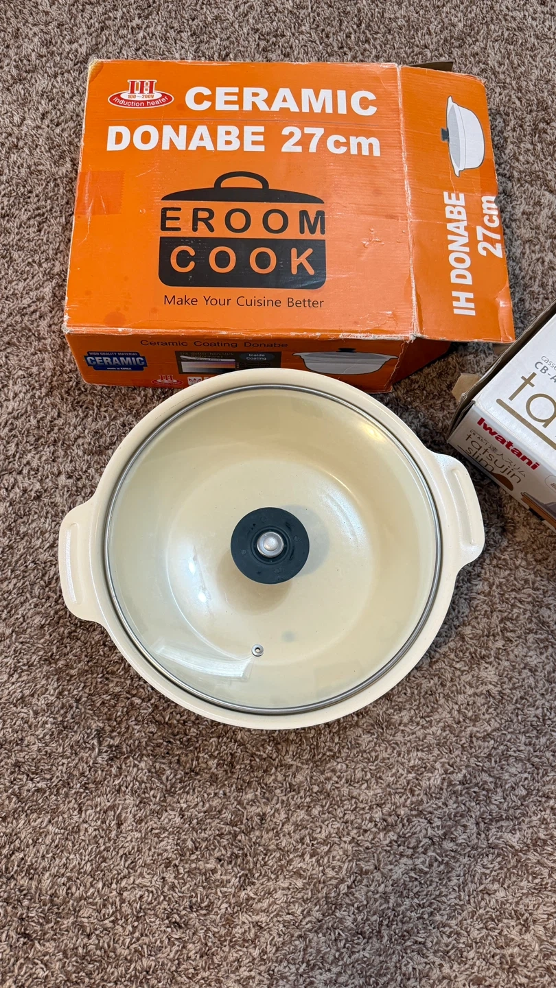 Selling a ceramic coating Donabe pot by Eroom Cook. It's 27cm and comes with a lid. Great for cooking various foods with its non-stick performance! The box is included too. PLEASE NOTE: Pickup in Tuscany area or meetup up at Market Mall. Price is firm. Cash only. Please send me a message with date/time to pickup.