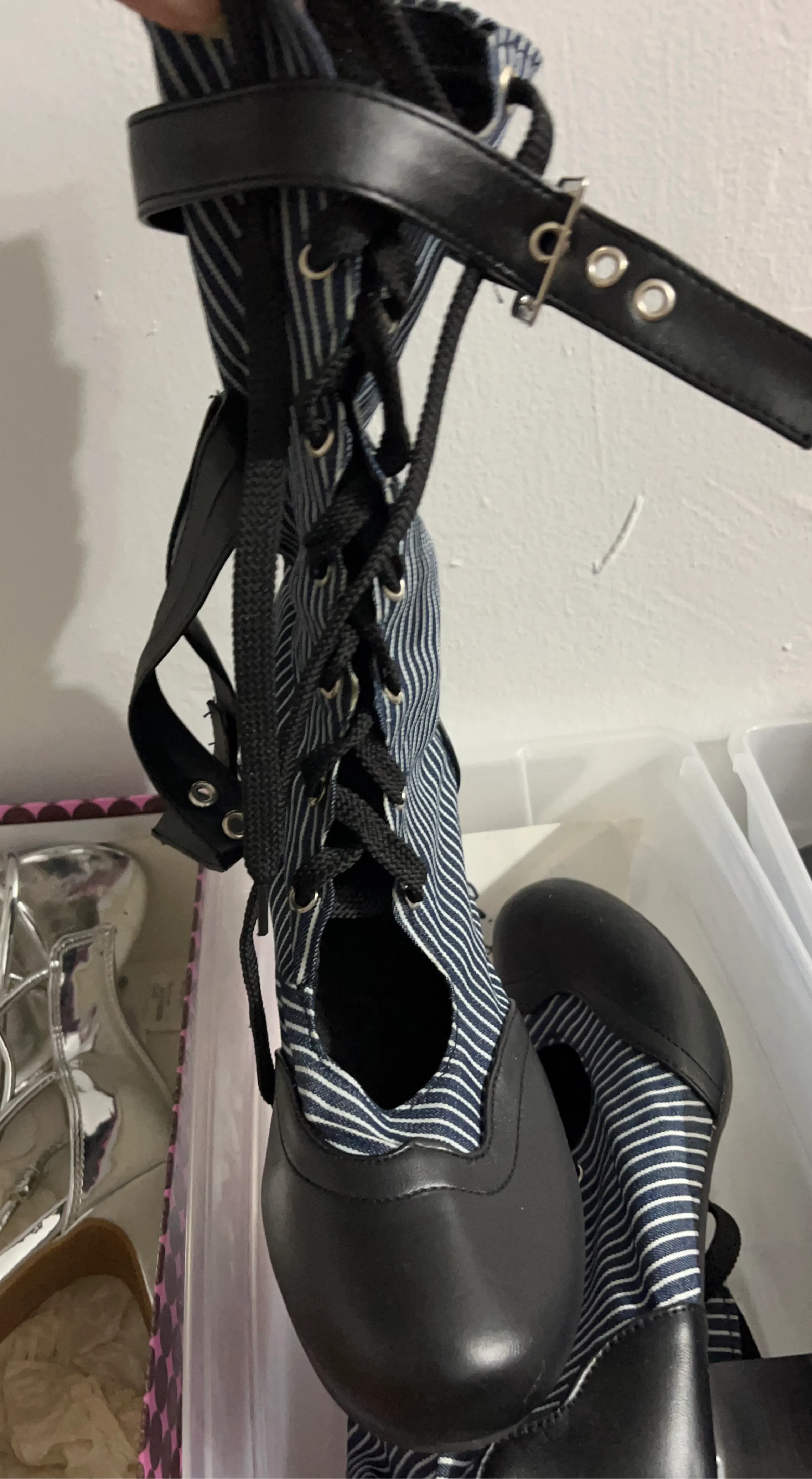 1 / 11 / 1Buy & SellBlue & White Striped Lace-Up HeelsBlue & White Striped Lace-Up Heels$12Cute blue and white striped heels with black leather accents and lace-up detailing! They're in great condition and ready for a new homeConditionNewSize8.5WHERE TO MEETWest 159th Street McDonald’sView MapSELLERverifiedJuliaWashington Heights974 reviews1 chats·0 favorites·19 viewsSEND CHAT TO SELLERHi Julia! I’m interested in your listing.Hi Julia! I’m interested in your listing.Get the Karrot app to chatSign In to chat