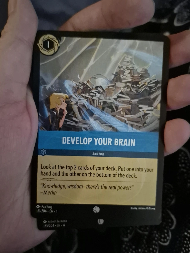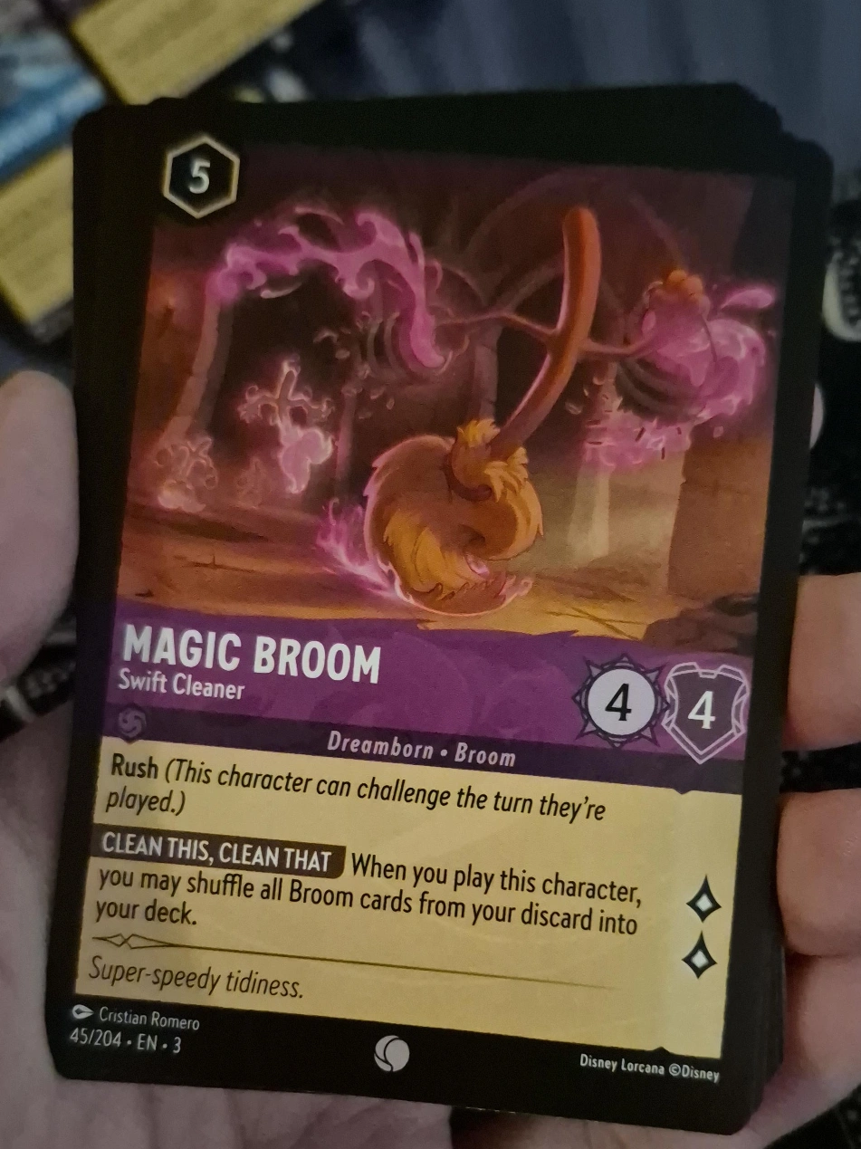 69Selling a collection of Disney Lorcana trading cards. Great for collectors and players alike! Includes cards like 'Legend of the Sword in the Stone', 'Develop Your Brain', and 'Magic Broom'.
