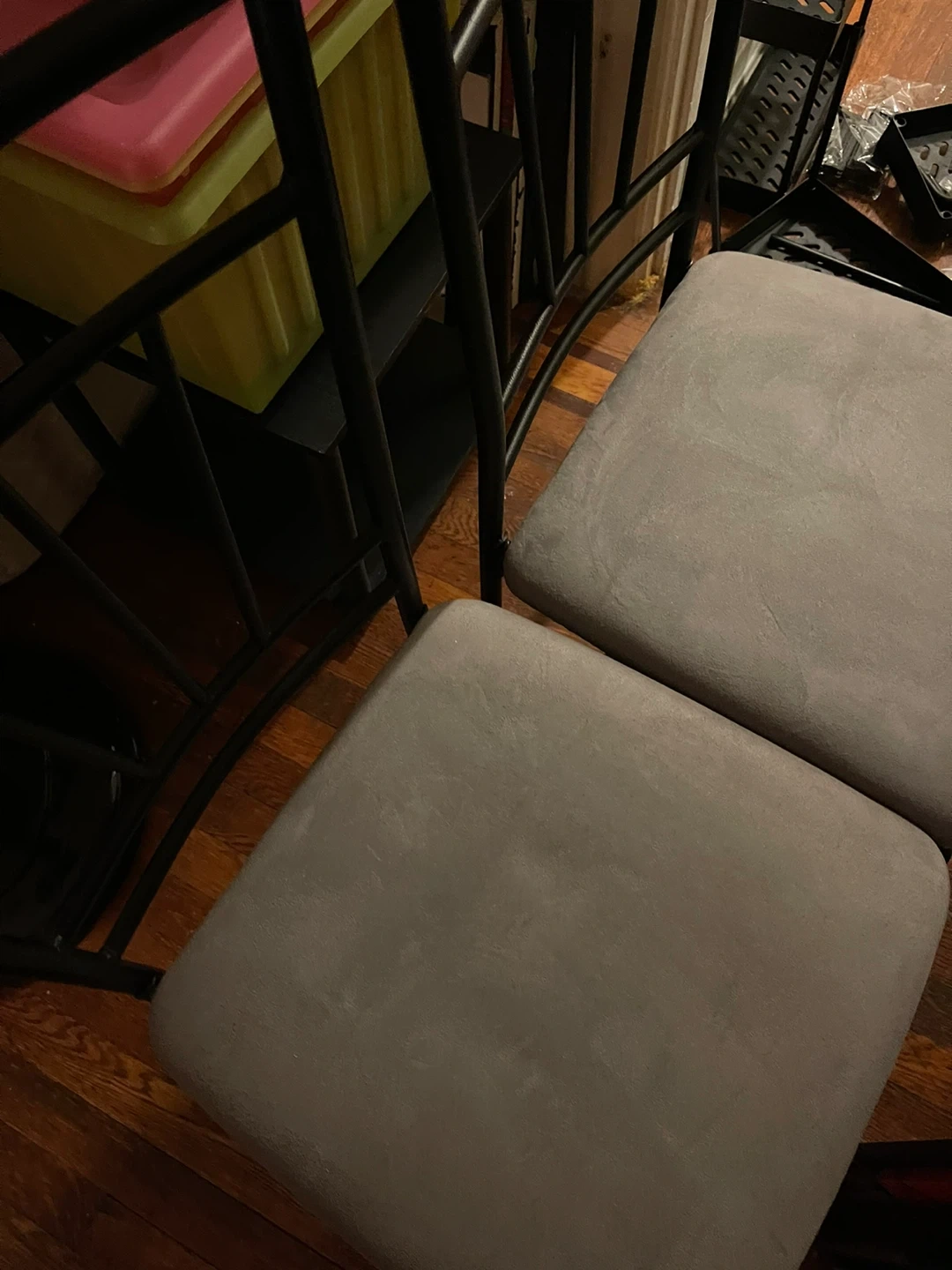 Selling a metal frame dining chair with a comfortable gray seat. It's perfect for adding a modern touch to your dining area or kitchen. The chair is sturdy and in great condition, ready to be used in your home!