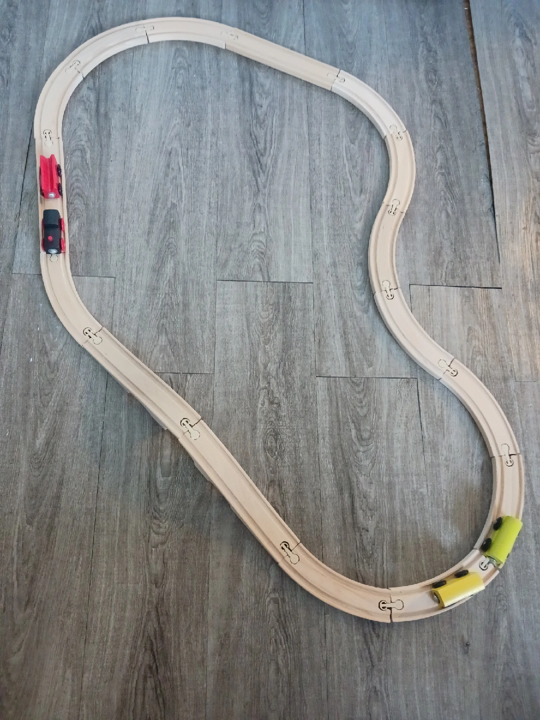 1000+Selling a used wooden train set. It includes the tracks and several train cars in different colours. Great for kids!