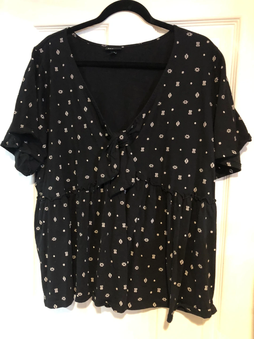Selling a Torrid blouse in a size 2. It's black with a white print and made of 100% cotton. Giving those retro vibes with that soft cotton feel! EUC. Newton, NE. Cash only. No automated messages. Crossposted.