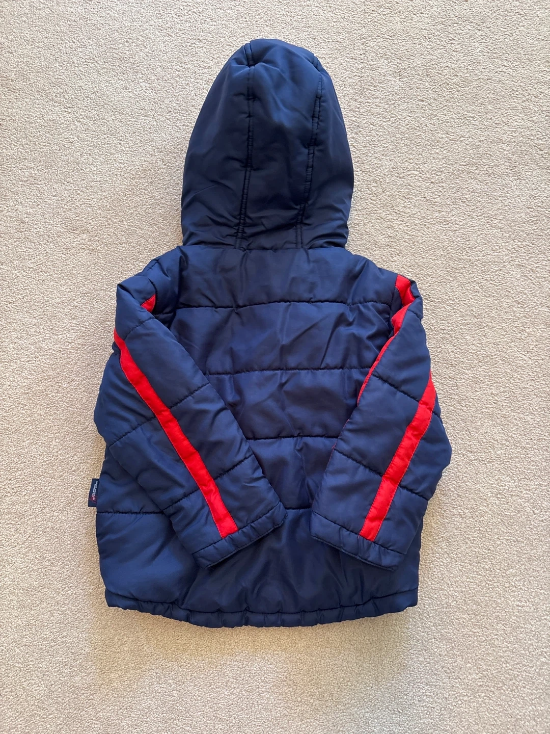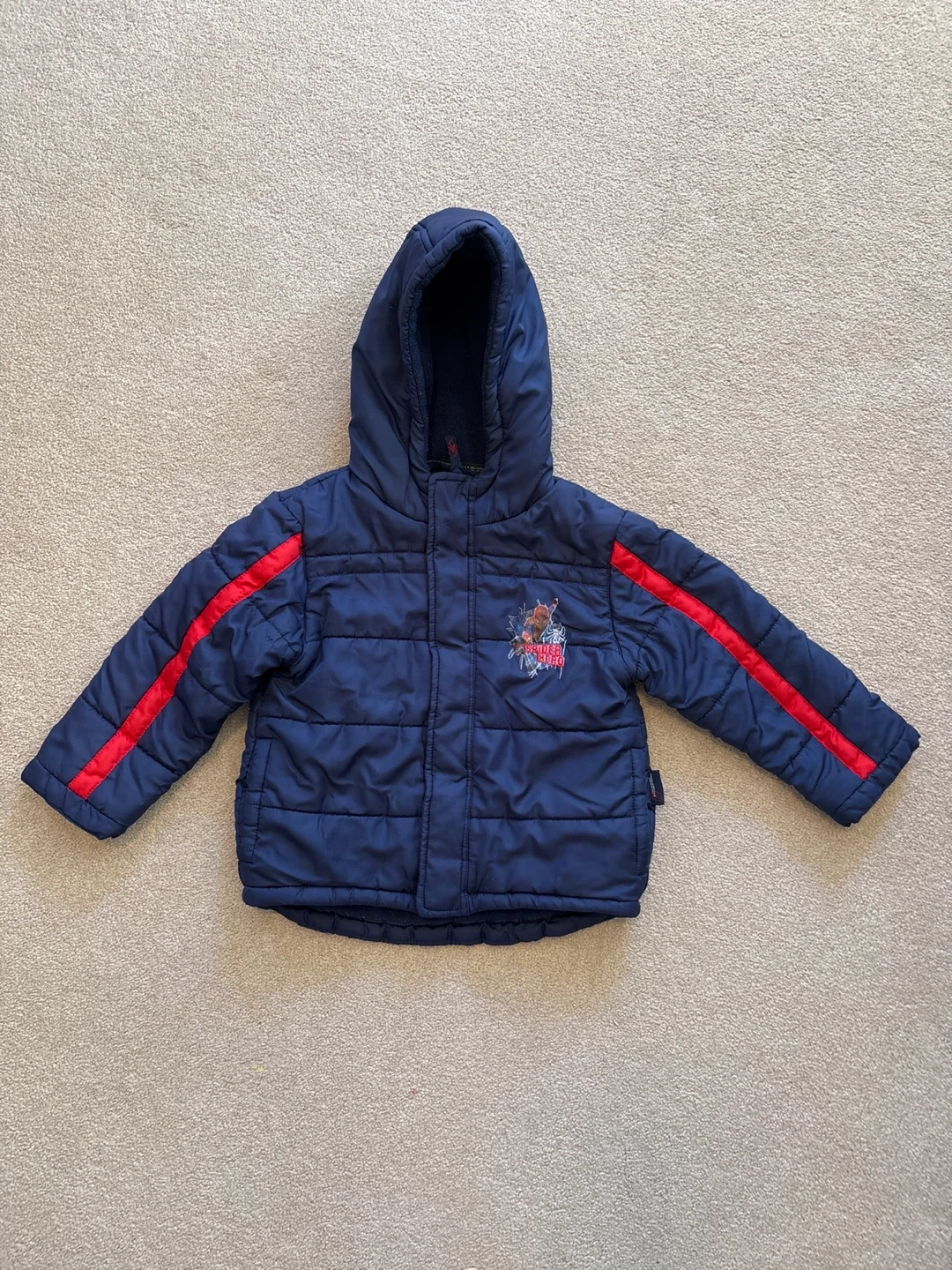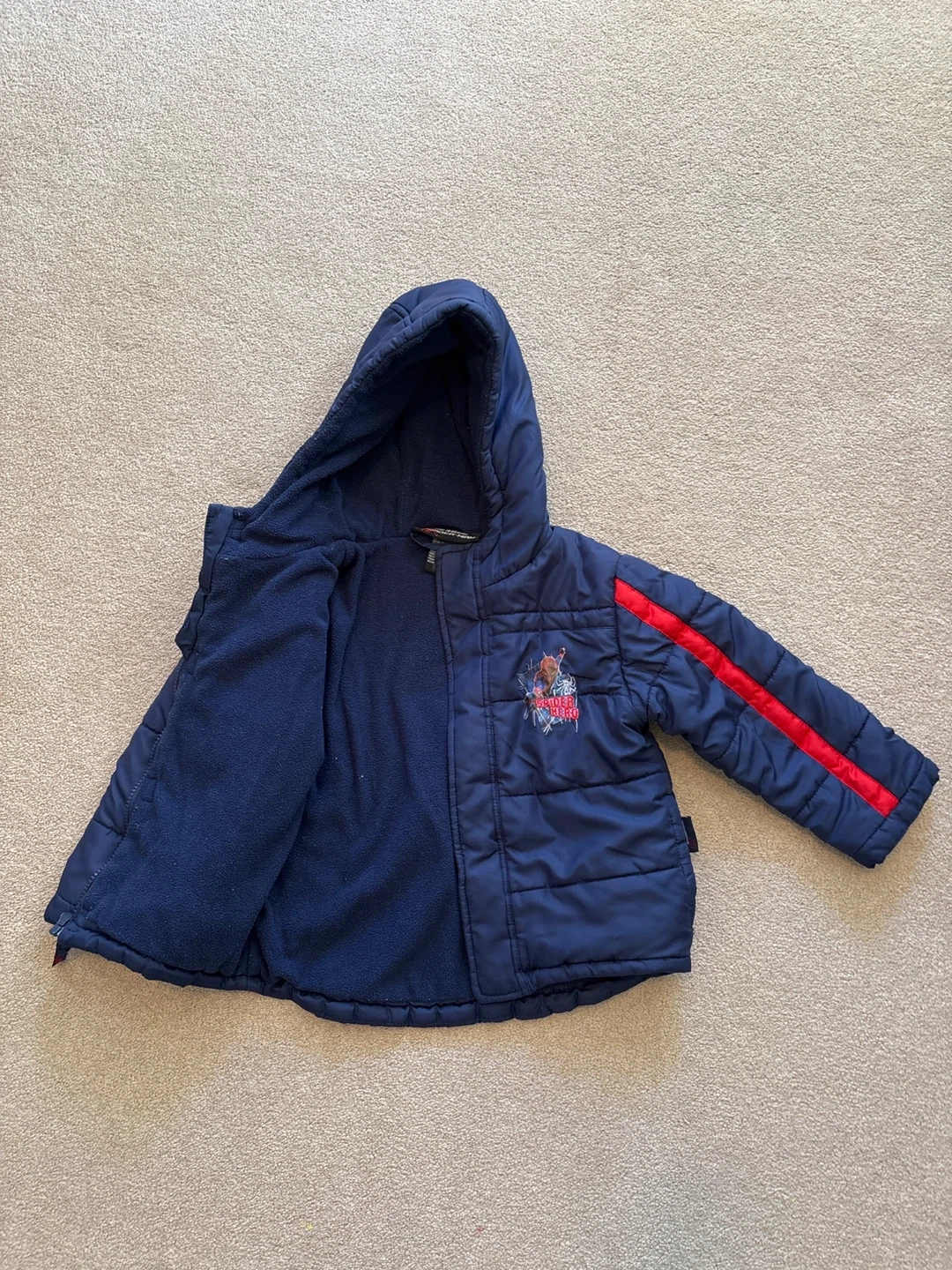 78Spider man hoodie puffer jacket in great condition! It's blue with red stripes on the sleeves. Perfect for keeping your little one warm during those chilly hockey nights