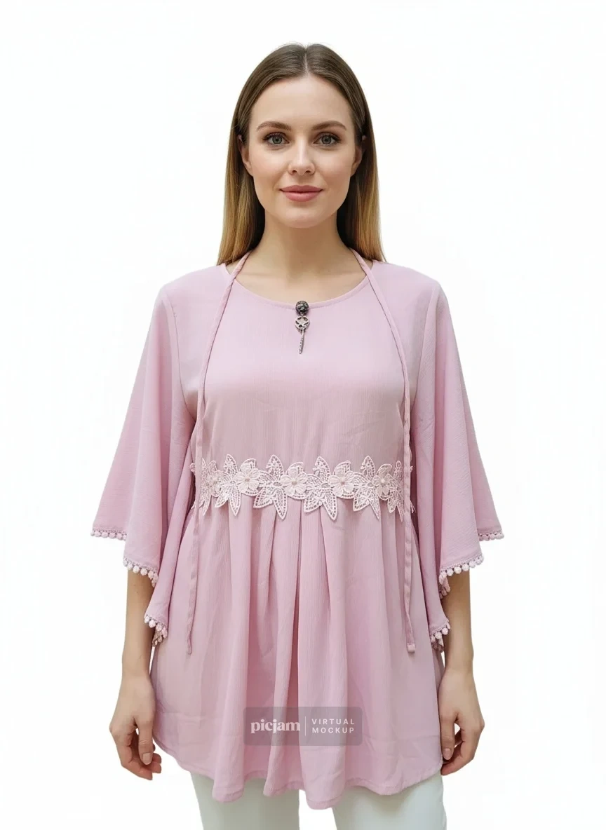 Casual soft pink color top for women. Half sleeves. Designs on the sleeves. Fit for small to medium sizes. Absolutely new. Smaller for me, never worn.