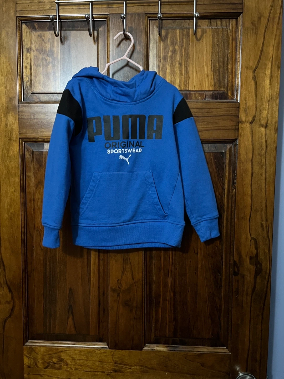 Selling a Puma hoodie in blue! It's a size 6 and features the Puma logo. Perfect for keeping your little one warm and stylish. Removed tags to wash but never worn