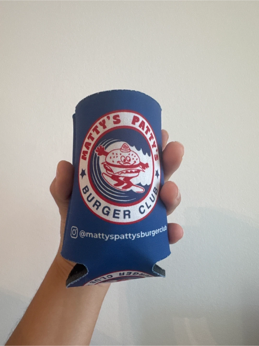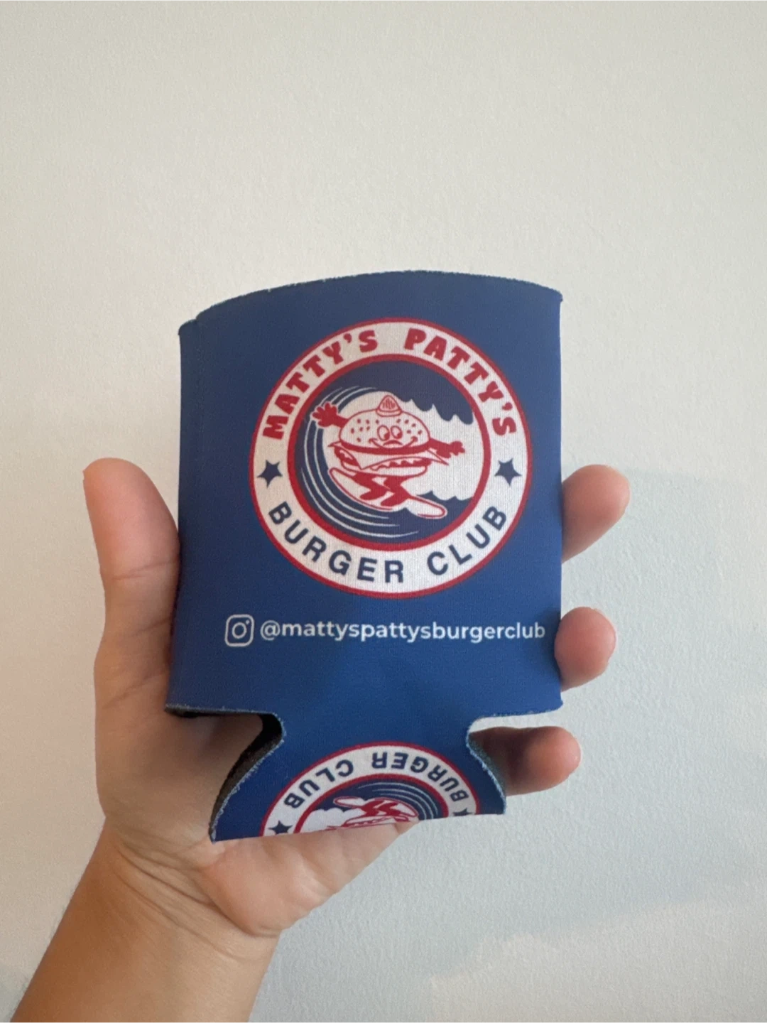 Keep your drinks cool with this Matty's Patty's Burger Club can cooler! It's perfect for summer BBQs or just chilling at home