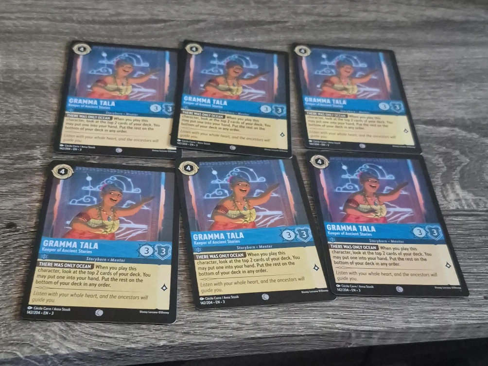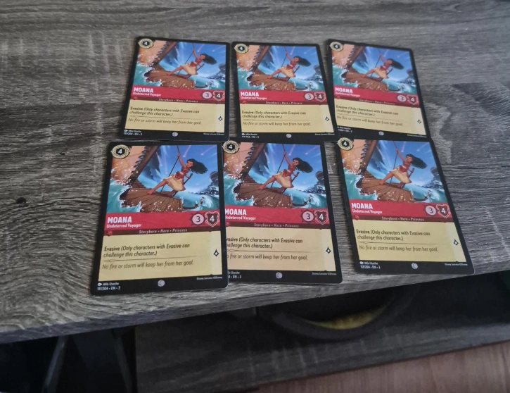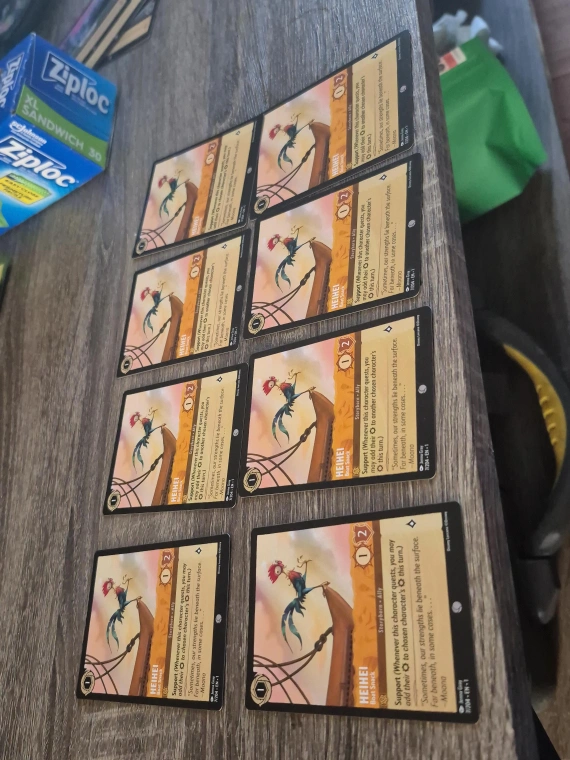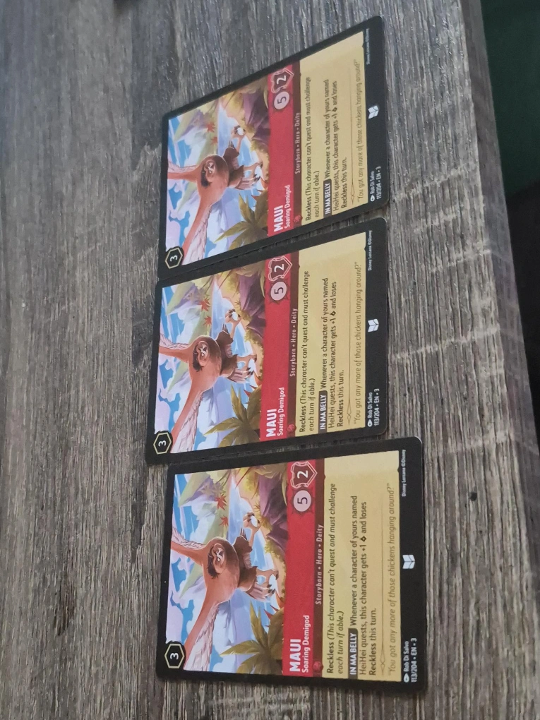 69Selling a collection of Disney Lorcana trading cards! Great for collectors or players looking to expand their decks. Cards include characters like Gramma Tala, HeiHei, Maui, and action cards like Last-Ditch Effort and Voyage. Perfect for adding some Disney magic to your gameplay!