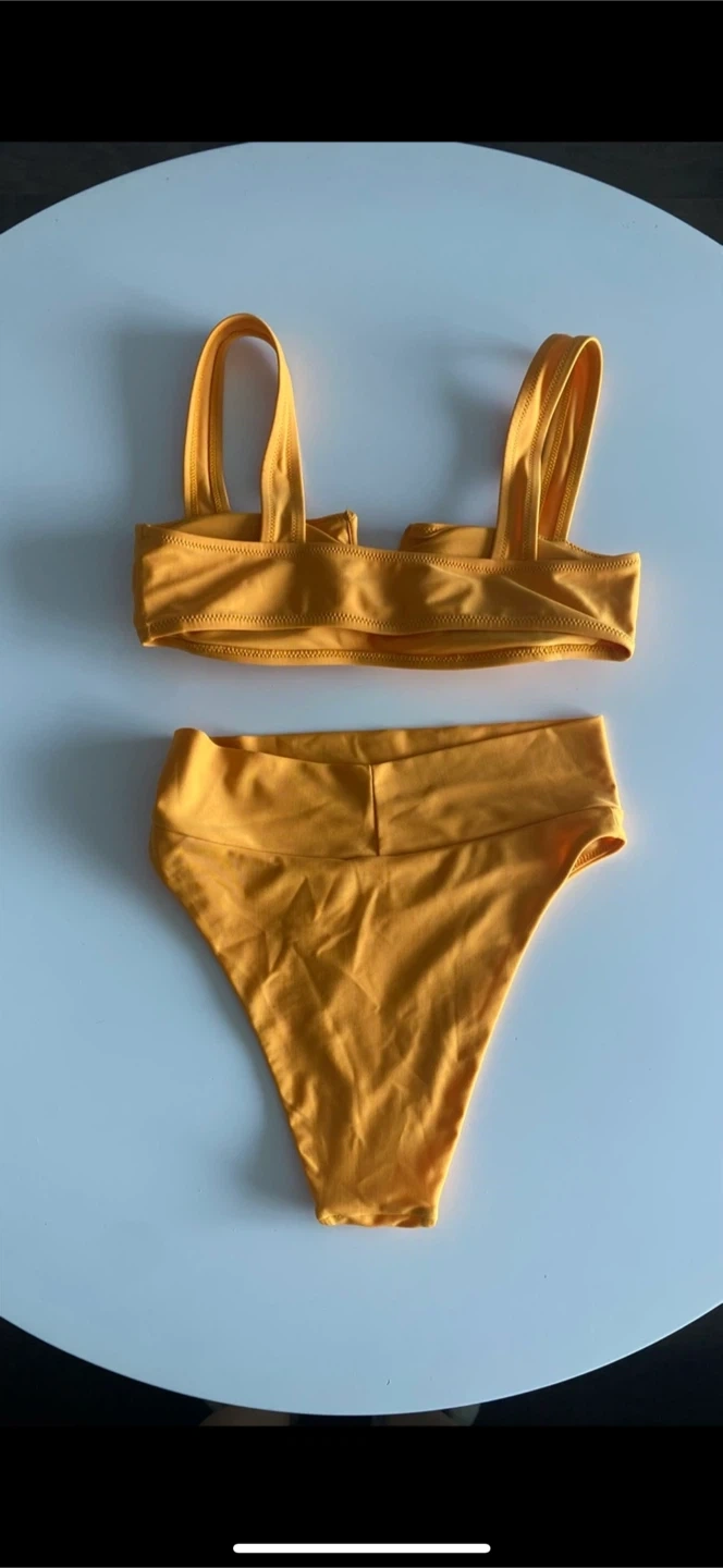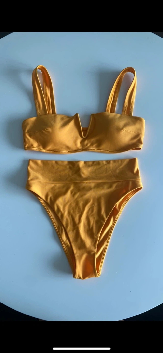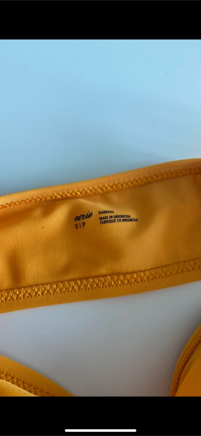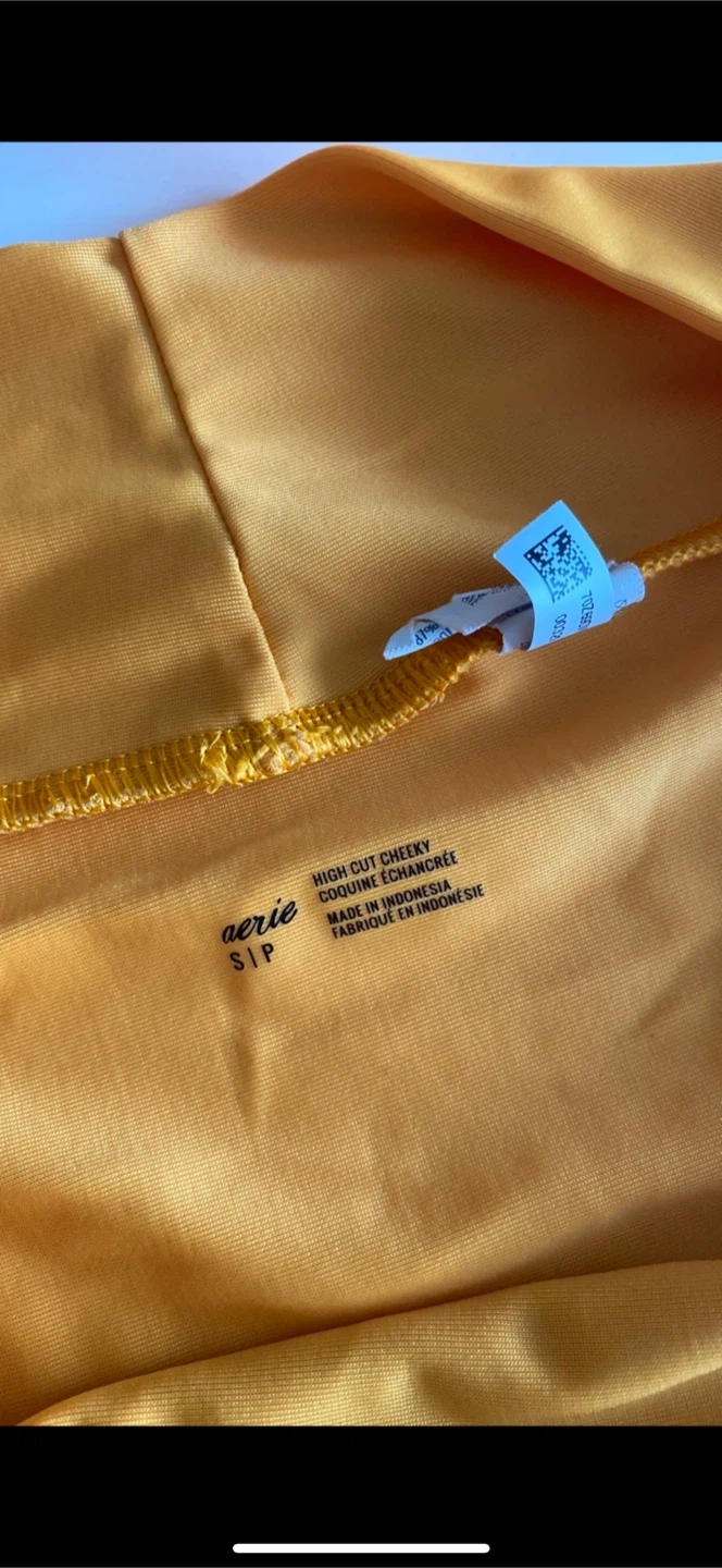 Selling a cute Aerie bikini in a vibrant yellow colour! It's a size small. The bottoms are high cut and cheeky. Perfect for summer!