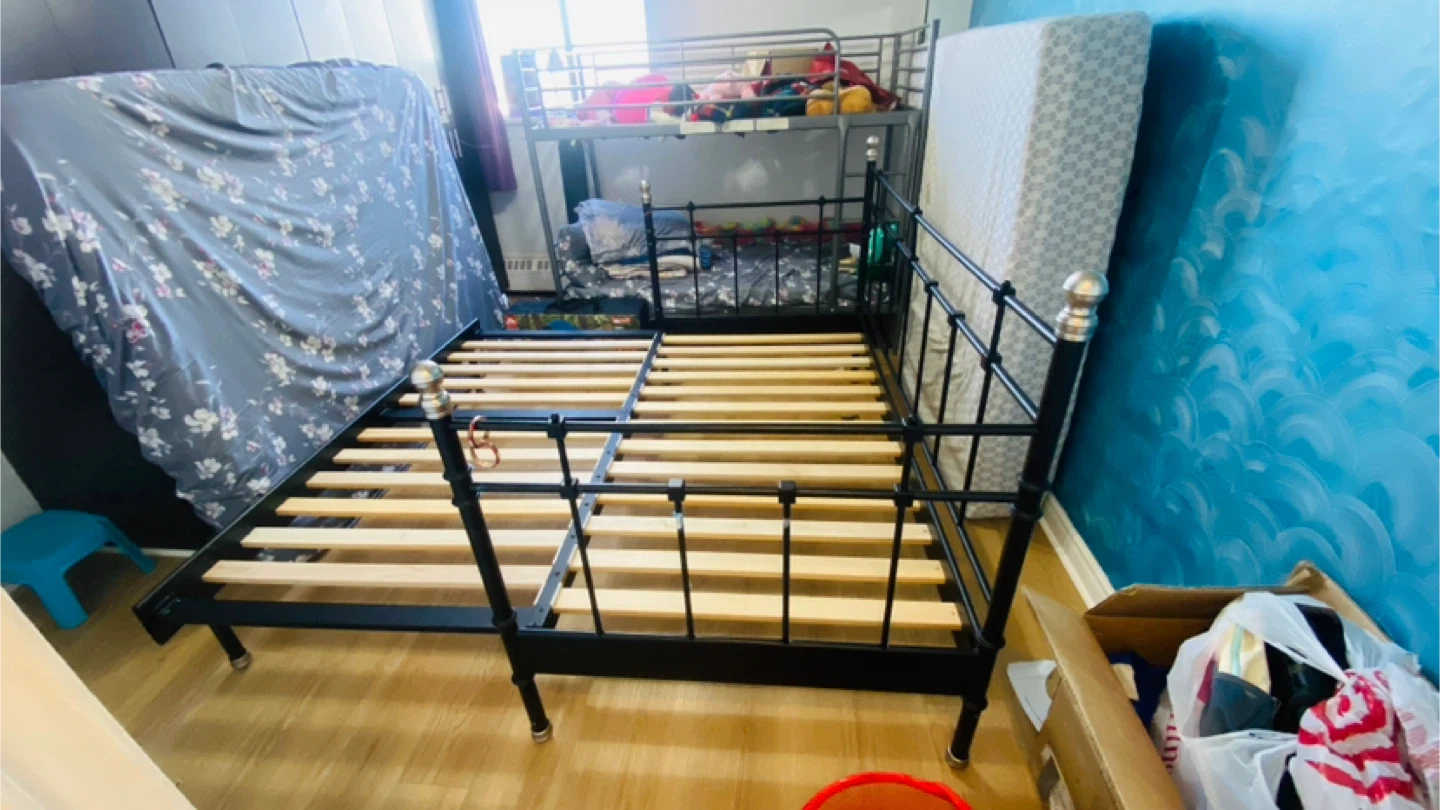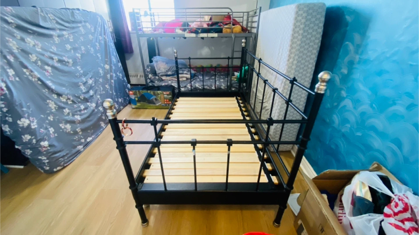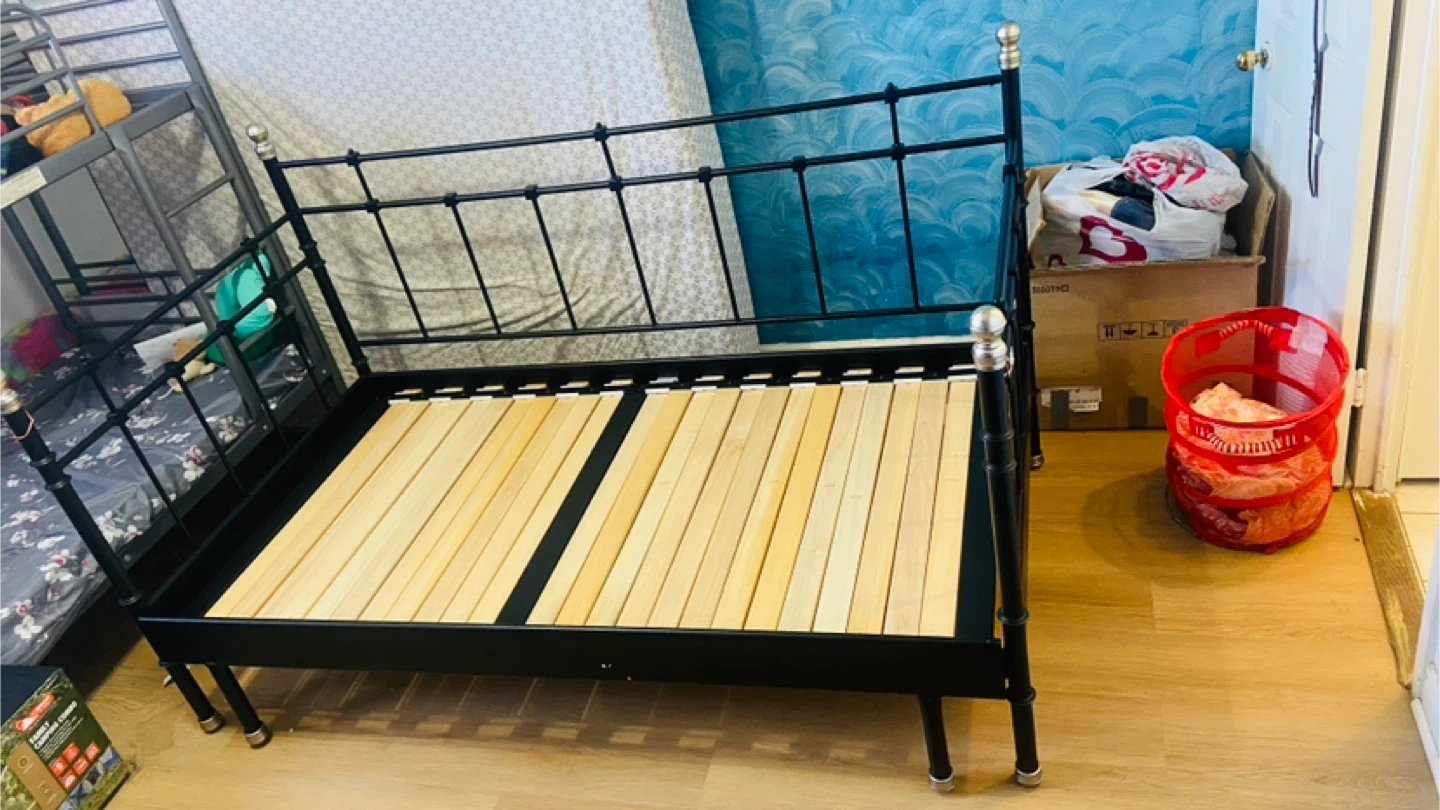 Selling a sturdy IKEA black metal bed frame. It's in great condition and ready for a new home! The frame is easy to assemble and provides excellent support. Perfect for any bedroom setup!single bed frame and extend to queen. Easy to assemble and disassemble.