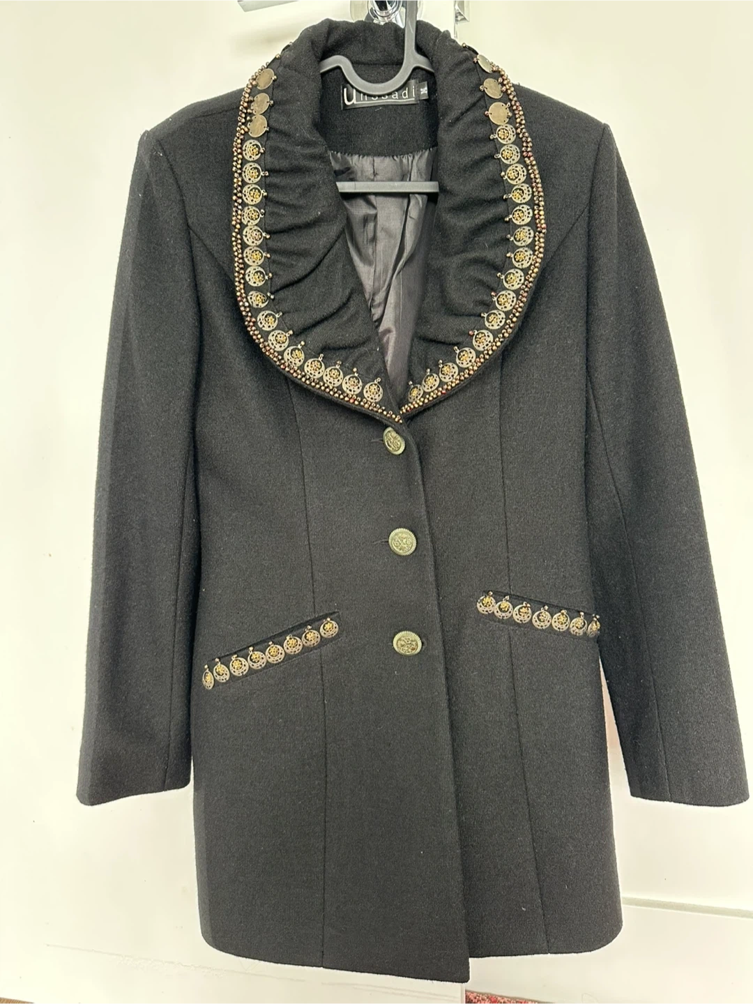 Selling a gorgeous vintage Unicord wool coat. It's black and features beautiful embellishments around the collar and pockets. Perfect for adding a touch of elegance to any outfit!