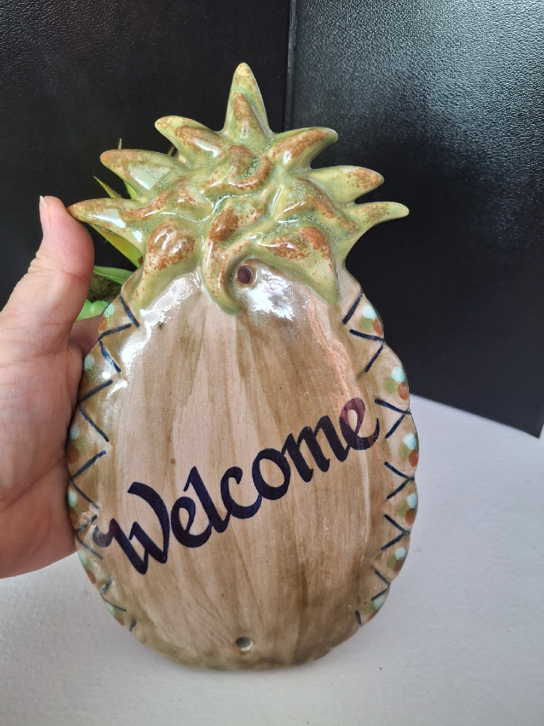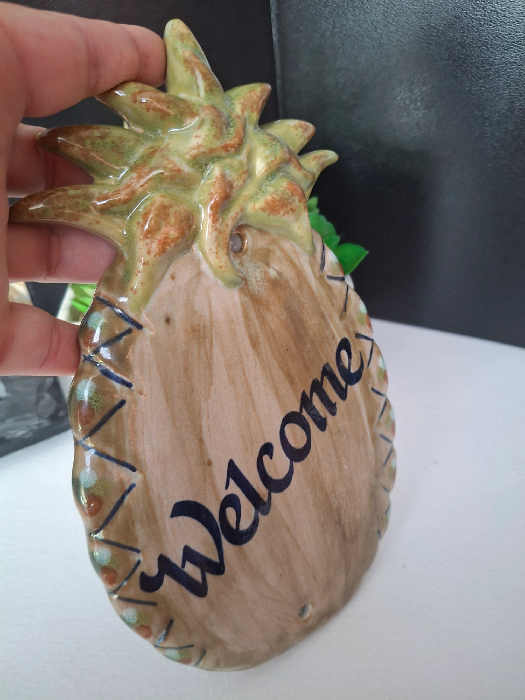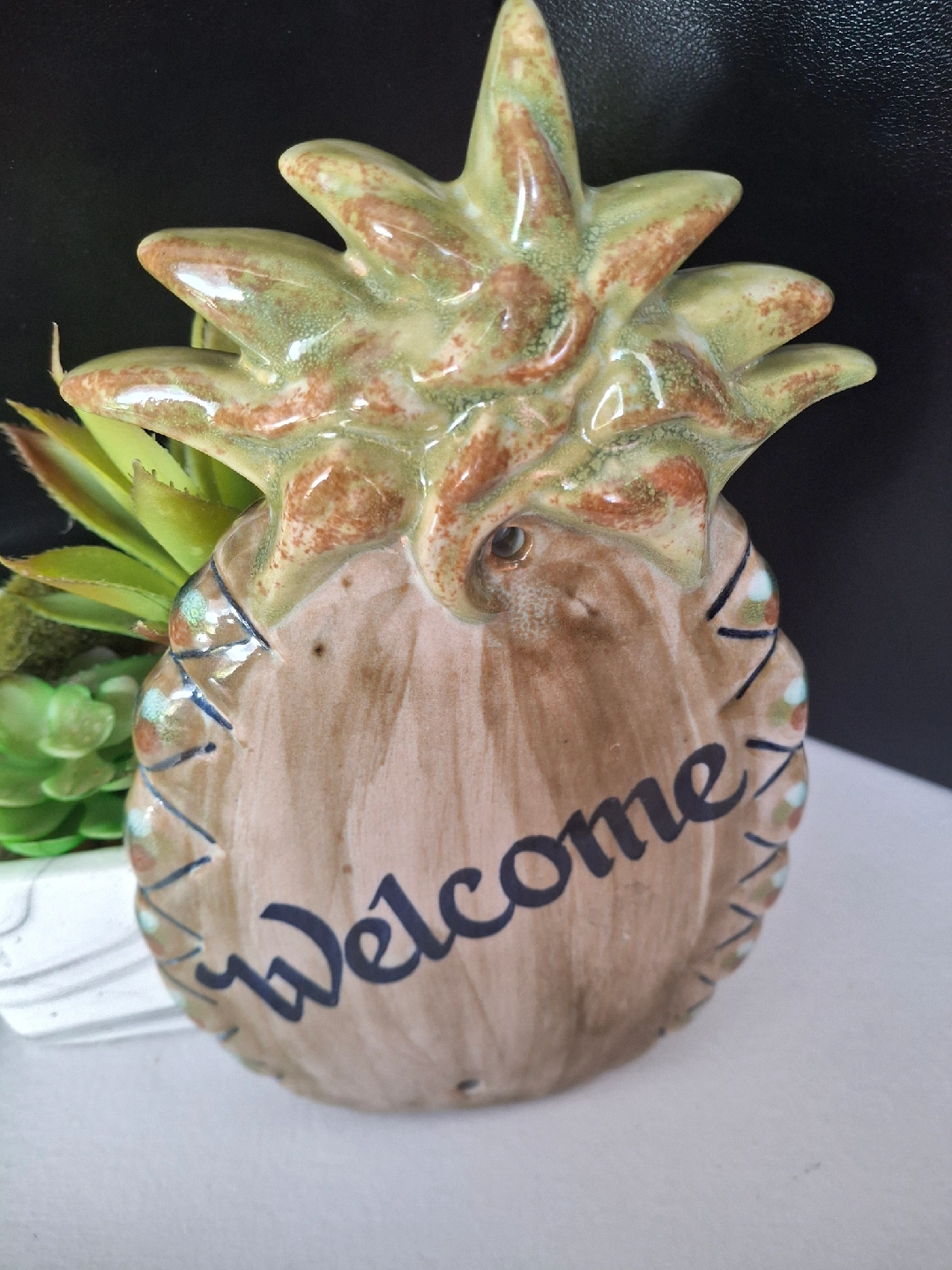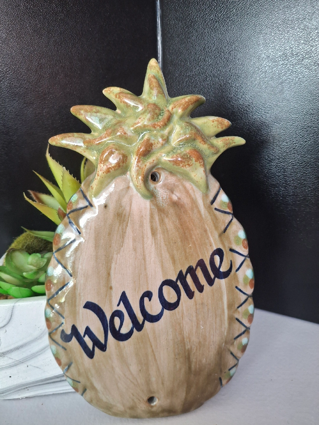 Add a touch of Southern Ceramic charm to your home with this adorable Louisville Stoneware pineapple welcome sign! 24x14 cm