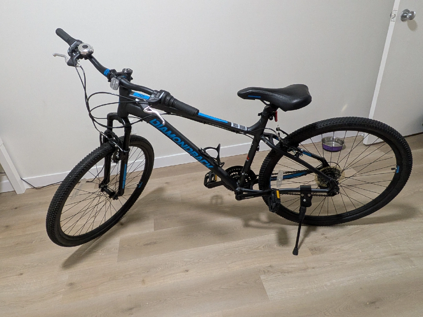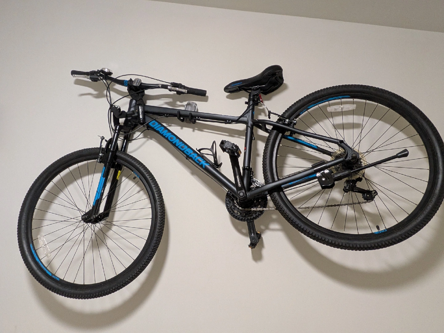 Selling a Diamondback Moonraker mountain bike in great condition! It's a sturdy and reliable bike, hardly ever used, still in perfect condition. I've mostly kept it mounted on the wall with intention to use but haven't gotten around to it since last year. Bought in spring time last year. Comes with a Kryptonite chain and a hook to mount on the wall as pictured in the first picture. Asking $400. Pickup in King Edward area