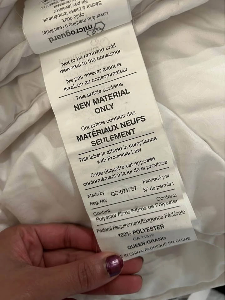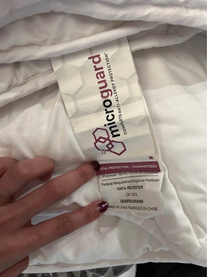 Selling a brand new Microguard comforter, still in its original packaging! It's a Queen/Grand size and made of 100% polyester. Used twice with cover. Comes with the grey cover if needed. Perfect for keeping cozy this winter! Pick up bay and temperance.