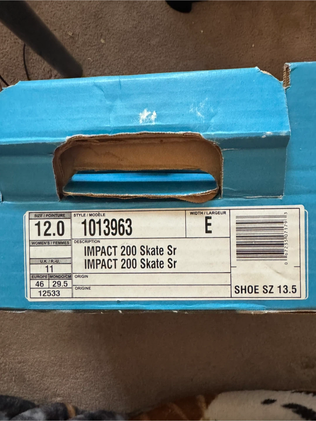 Selling a pair of Bauer Impact 200 Men’s Skates Sr hockey skates in size 12!!! They are in good condition and come with the original box.