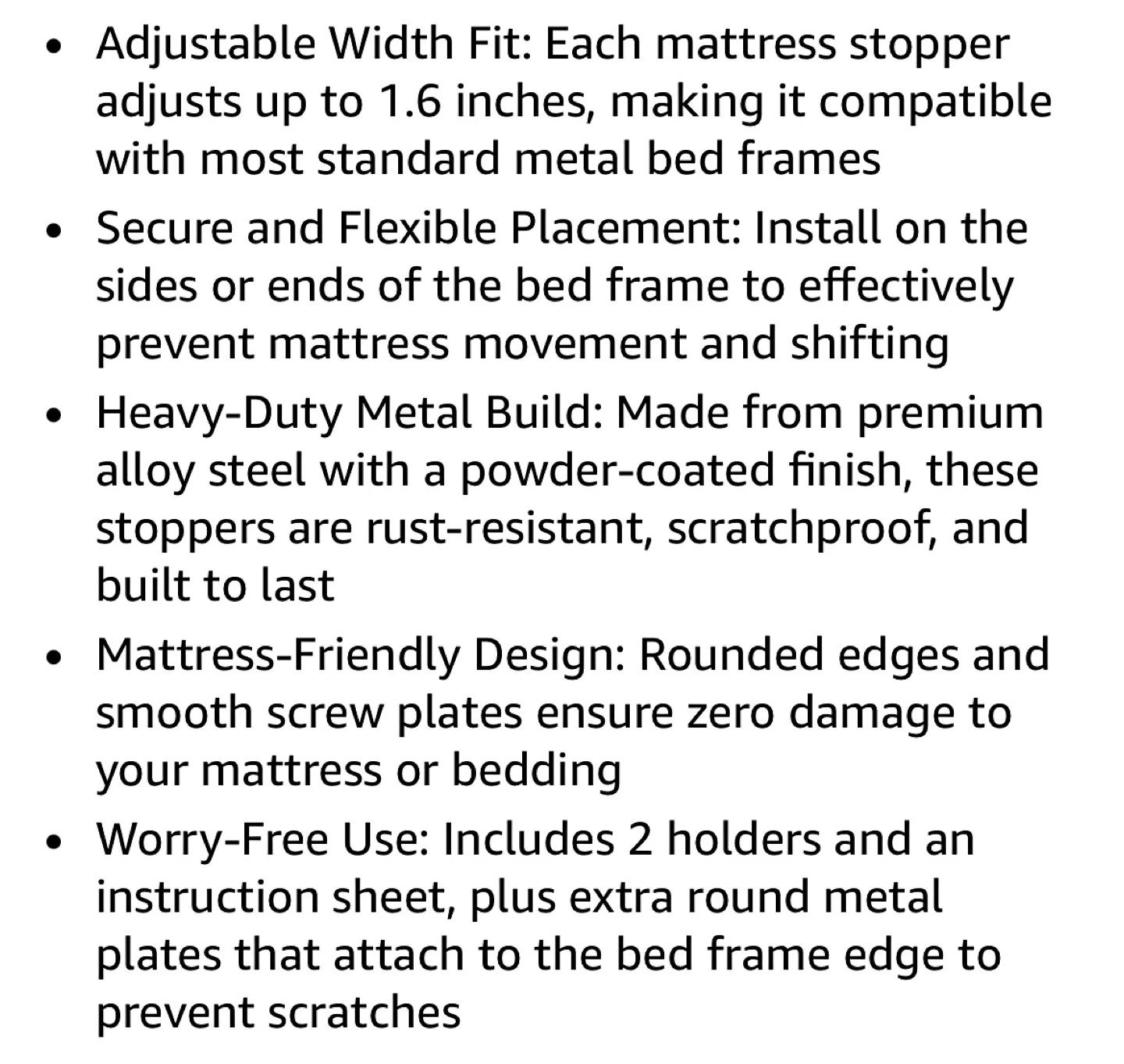 Keep your mattress securely in place with this 2-pack Josmimic Adjustable Mattress Stopper Set. Perfect for standard metal bed frames, these stoppers prevent mattress shifting while protecting your bedding. ✨ Features: • Adjustable Width: Fits up to 1.6 inches, compatible with most standard metal bed frames • Secure Placement: Install on sides or ends of the bed frame to stop mattress movement • Heavy-Duty Build: Made from premium alloy steel, powder-coated, rust-resistant & scratchproof • Mattress-Friendly: Rounded edges & smooth screw plates prevent damage • Complete Set: Includes 2 holders, instruction sheet, and extra round metal plates to protect the frame 📍 Pickup Only: Near Islington & Finch or Jane & Eglinton 💵 Payment: Cash or e-transfer
