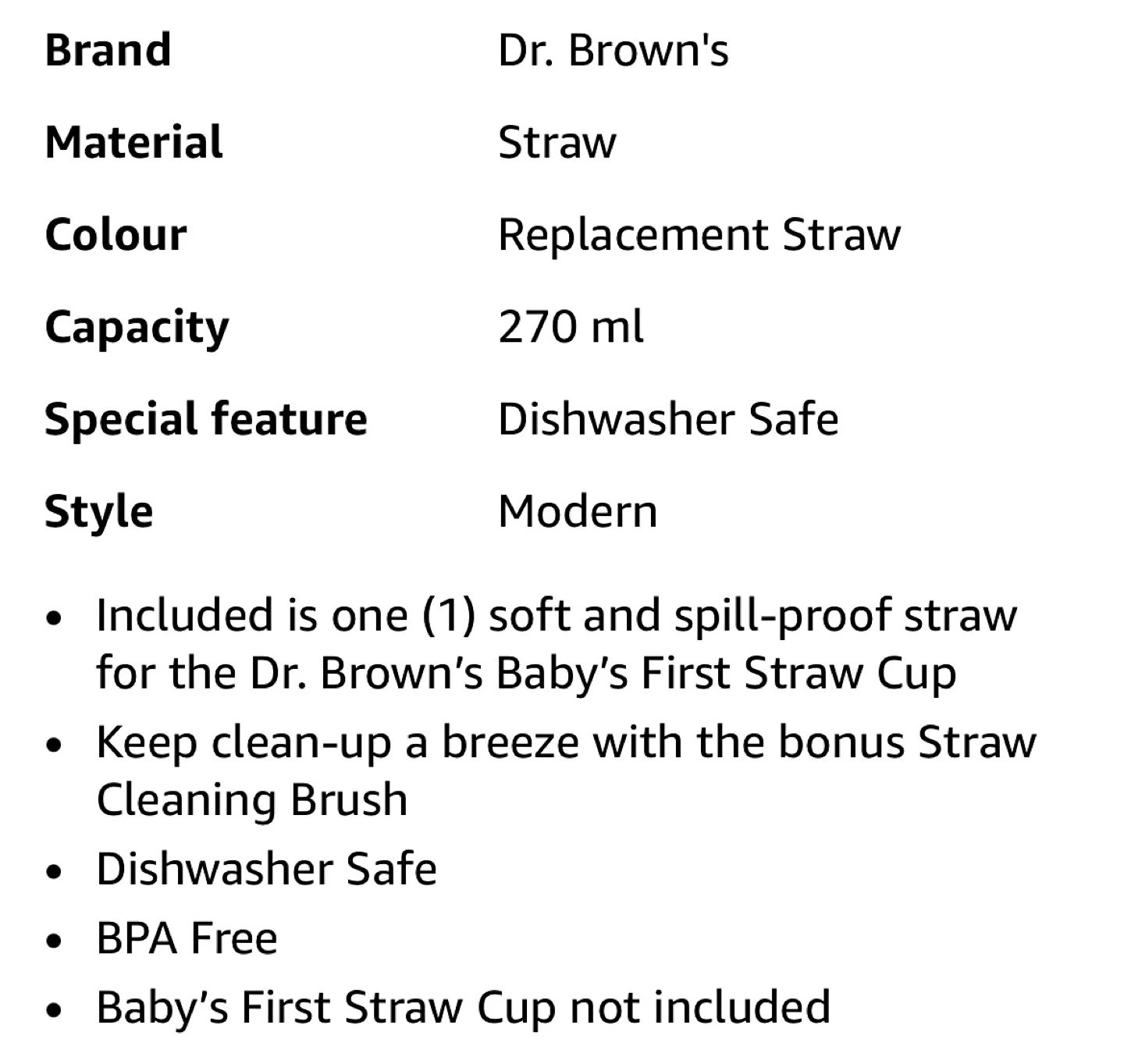Dr. Brown’s Baby’s First Straw Cup Replacement Kit (for 9oz/270ml cup). Includes one soft, spill-proof straw and a bonus straw cleaning brush. ✨ Features: • Fits the Dr. Brown’s Baby’s First Straw Cup (cup not included) • Dishwasher Safe for easy cleaning • BPA Free – safe for babies 6+ months • Comes with cleaning brush for convenience • Still brand new, sealed packaging • Currently not sold on Amazon 📍 Pickup Only: Near Islington & Finch or Jane & Eglinton 💵 Payment: Cash or e-transfer