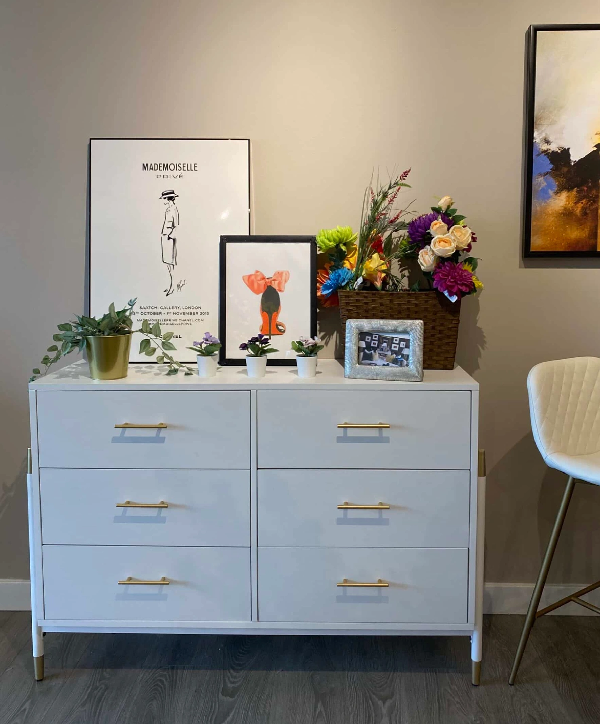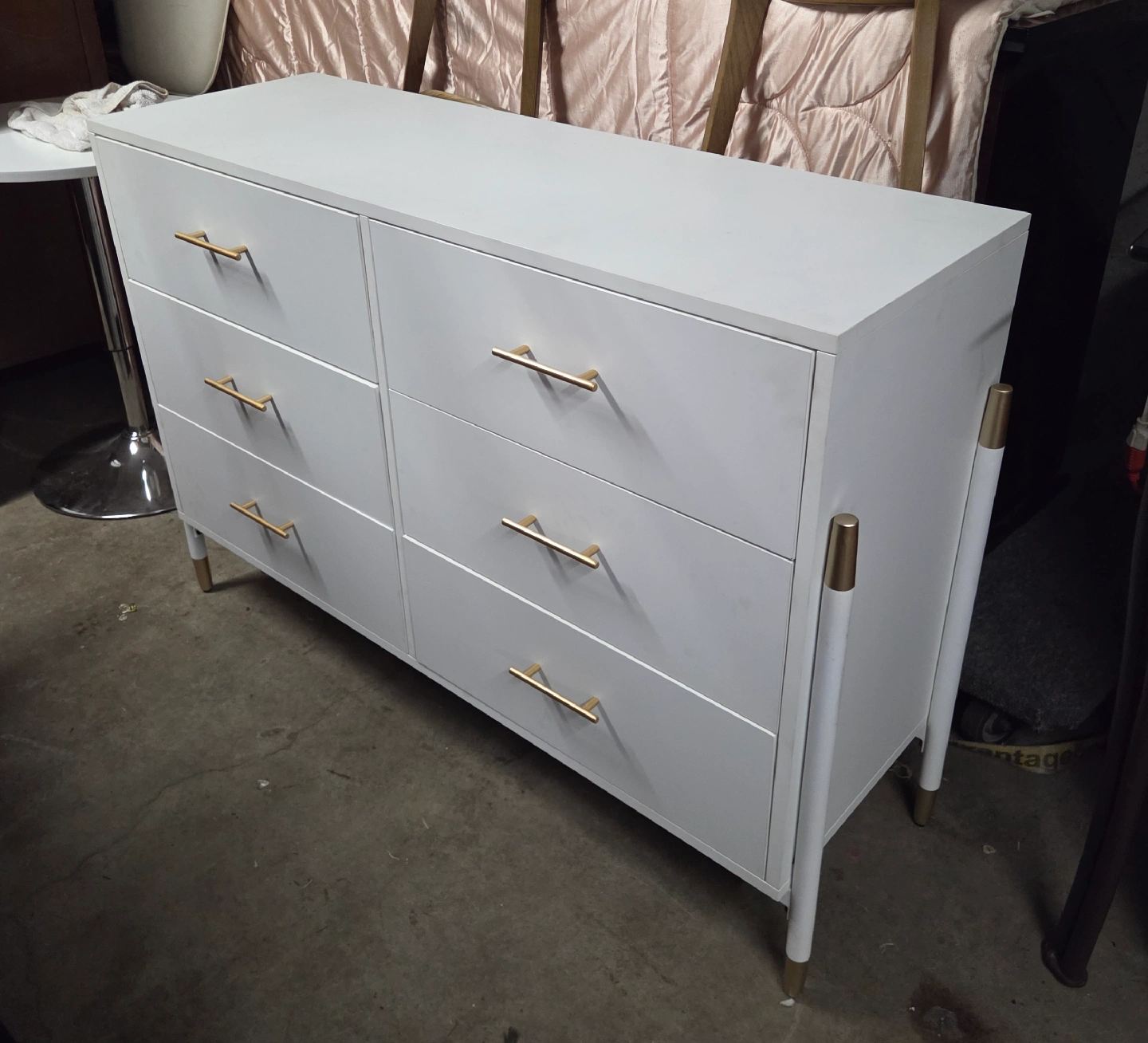 Modern stylish design with golden handles and gorgeous side poles, six drawers.