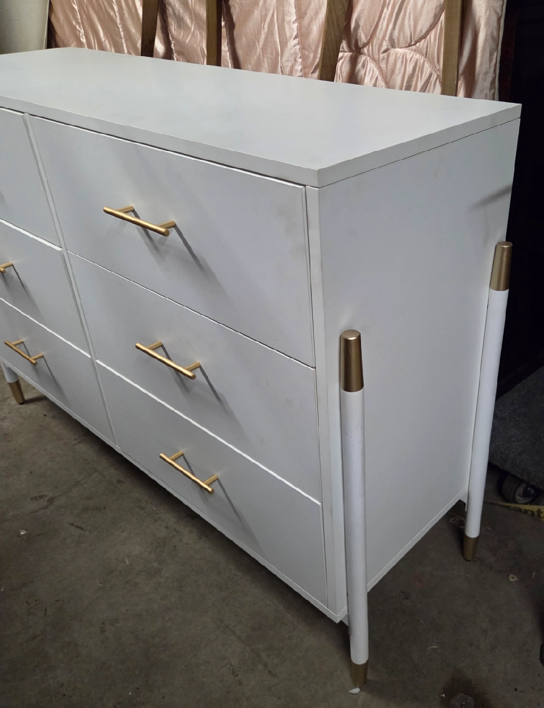 Modern stylish design with golden handles and gorgeous side poles, six drawers.