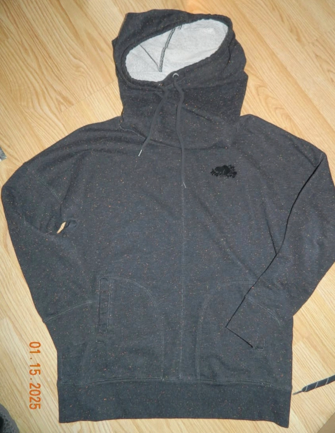 Cozy Roots hoodie in a charcoal heather colour! It features a stylish cowl neck and a kangaroo pocket. The material is soft and comfortable, perfect for those chilly days. WOMENS ROOTS COWL NECK HOODY size M...EUC