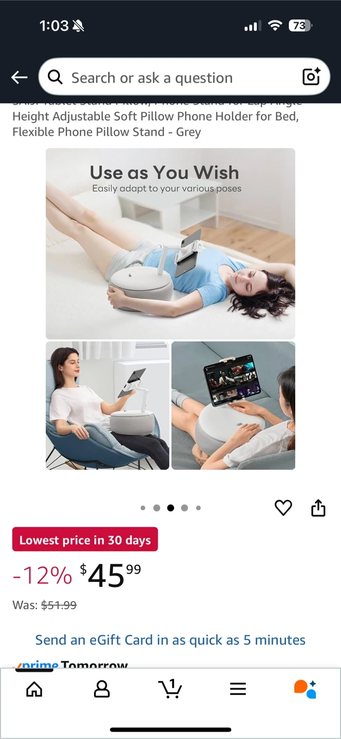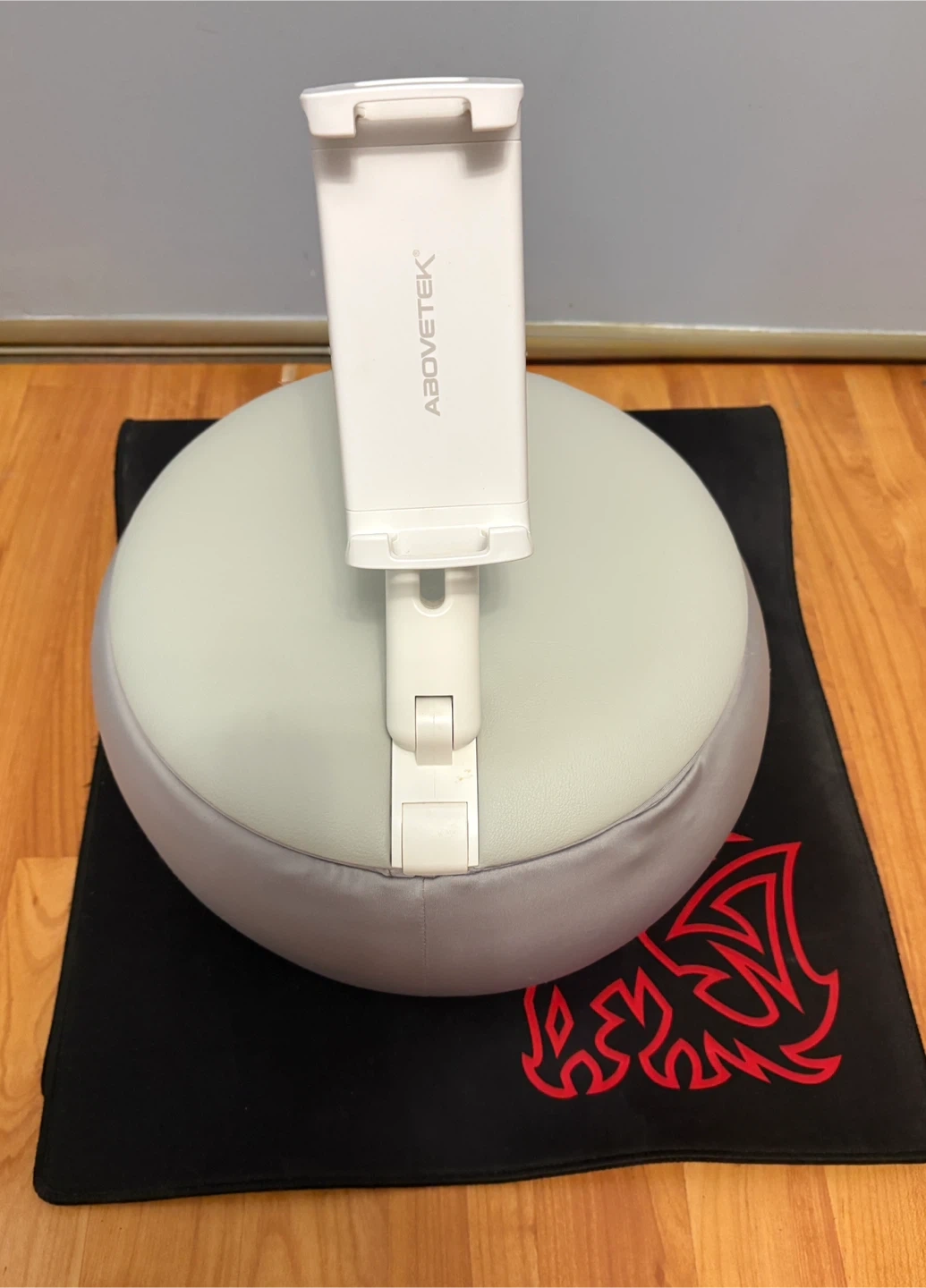 Selling a height adjustable soft pillow phone holder for your bed or couch! It's grey and in great condition. It's flexible, so you can easily adapt it to various positions.