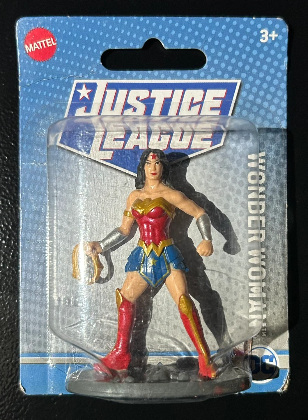 Selling a Justice League Wonder Woman figurine, still in its original packaging! It's suitable for ages 3 and up and would make a great addition to any collection