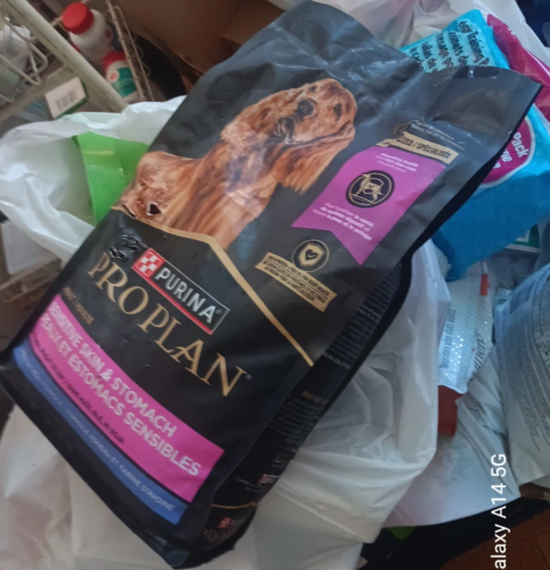 Selling a bag of Purina Pro Plan dog food for sensitive skin and stomachs. It's formulated with lamb and oat flour. Perfect for adult dogs with sensitivities! 647-203-0411