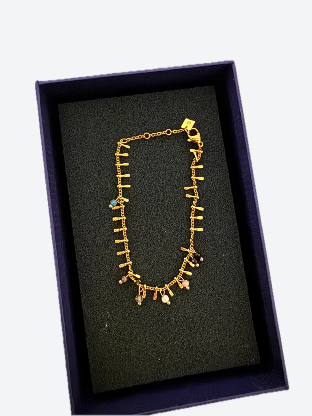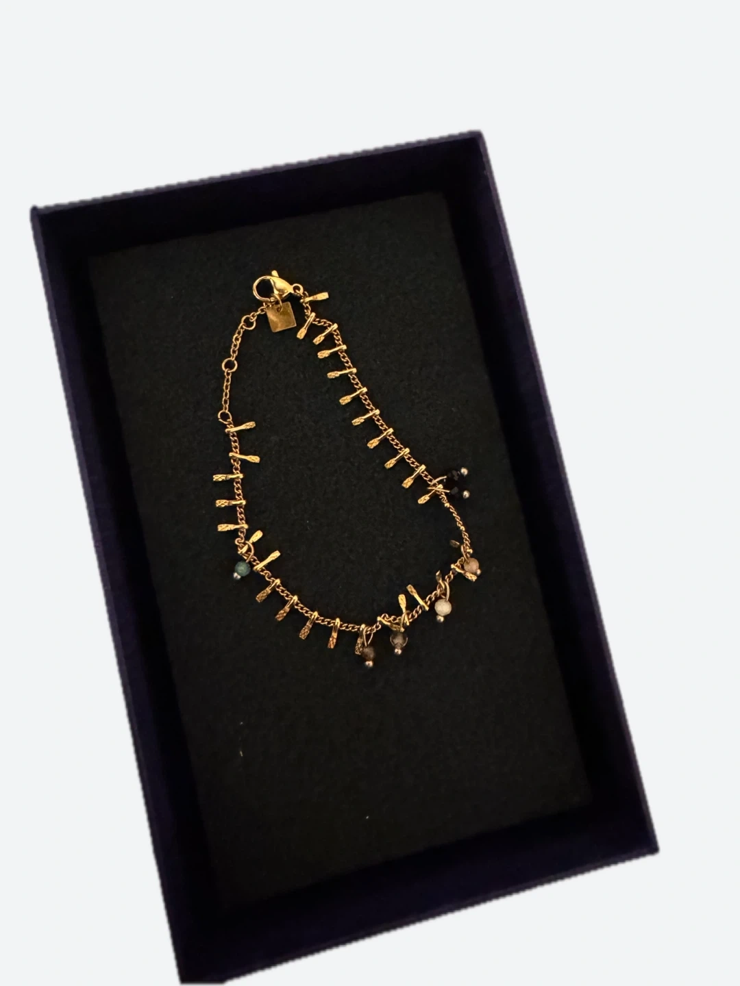 113This is a lovely gold-tone bracelet from Pilgrim. It features delicate charms and comes in its original box. Perfect for adding a touch of elegance to any outfit!