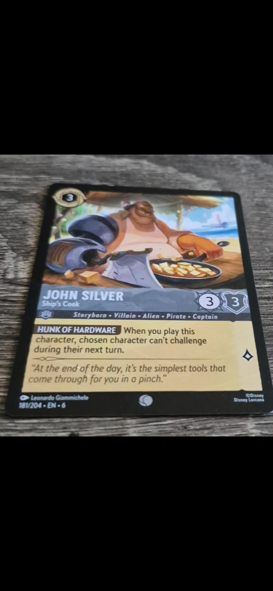 70Selling a collection of Disney Lorcana trading cards! Includes characters like John Silver, Starkey, Scroop, Jim Hawkins, and Mr Arrow. Great for any Disney or TCG fan