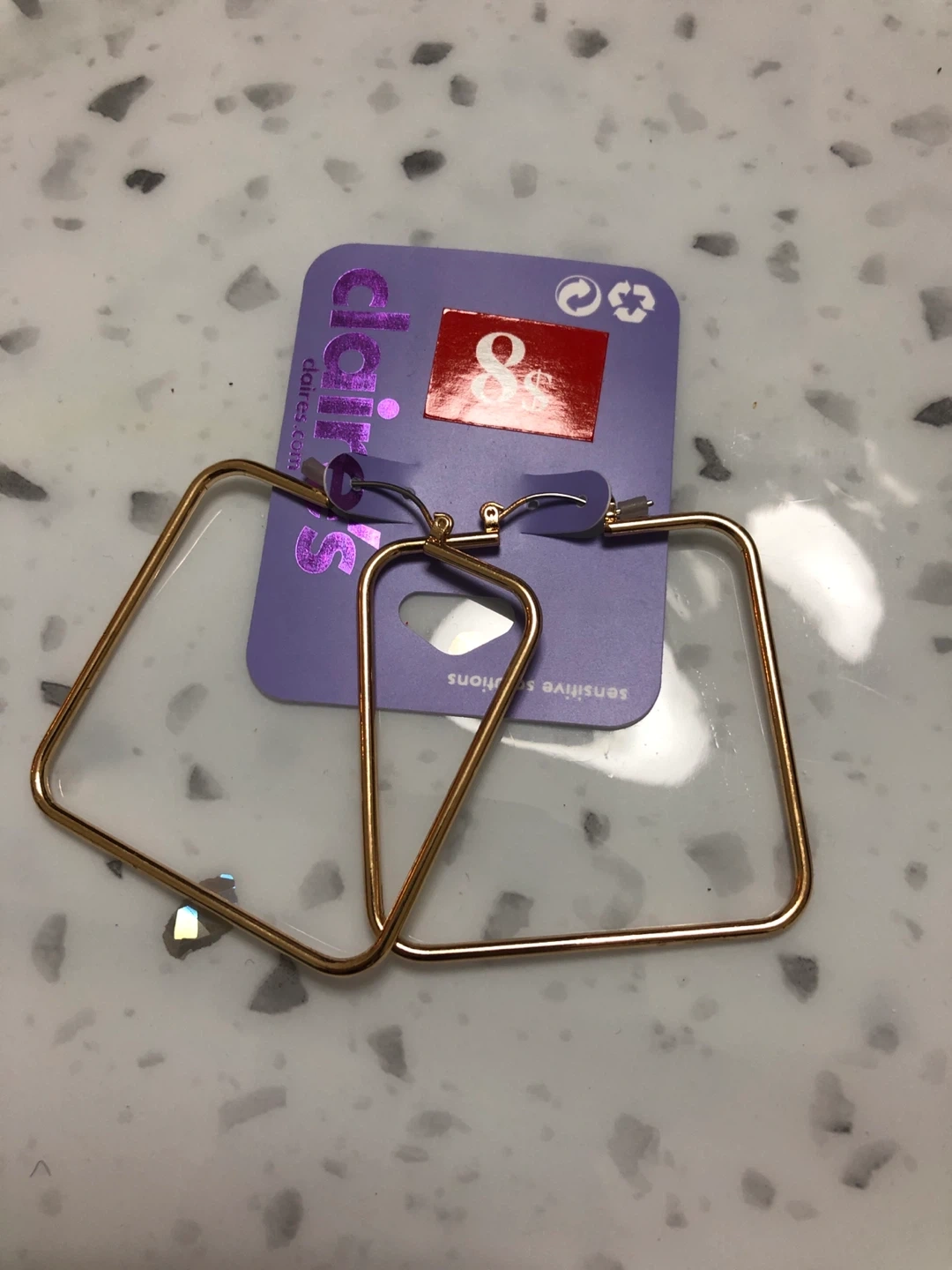 Selling a pair of Claire's square hoop earrings! These are gold in colour and perfect for adding a touch of style to any outfit. They are in great condition and ready for a new home Downtown pick up Cash only