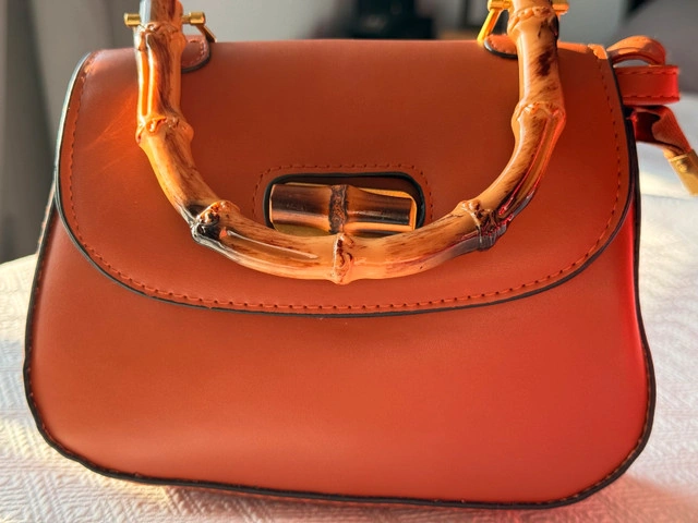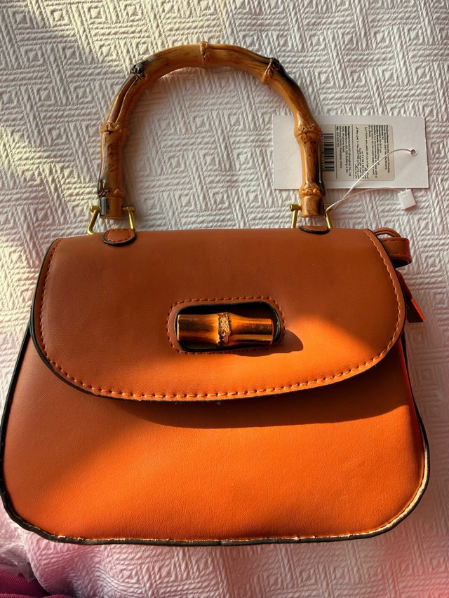 902This is a stylish, new purse with a distinctive bamboo handle and a rich tan colour, perfect for adding a touch of elegance to any outfit. The bag features a unique bamboo handle, giving it a natural and sophisticated look. * Colour: Tan * Handle: Bamboo * Condition: Nearly new Let me know if you're interested! If the ad is still up, it's still available!