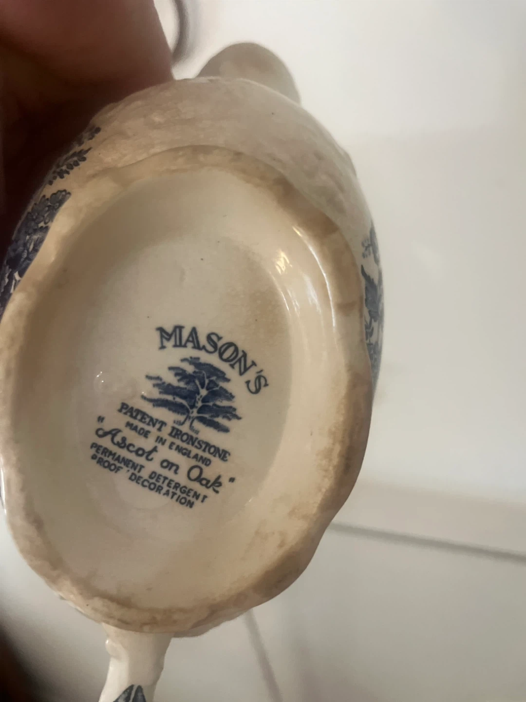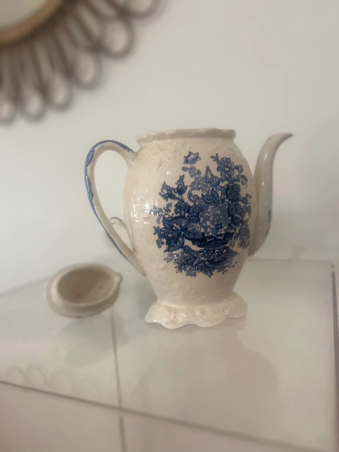 Selling a charming vintage teapot with a matching gravy boat. The set features a beautiful blue floral design on a cream-coloured base. Perfect for adding a touch of elegance to your tea time or dinner gatherings! A lovely addition to any collection or kitchen.
