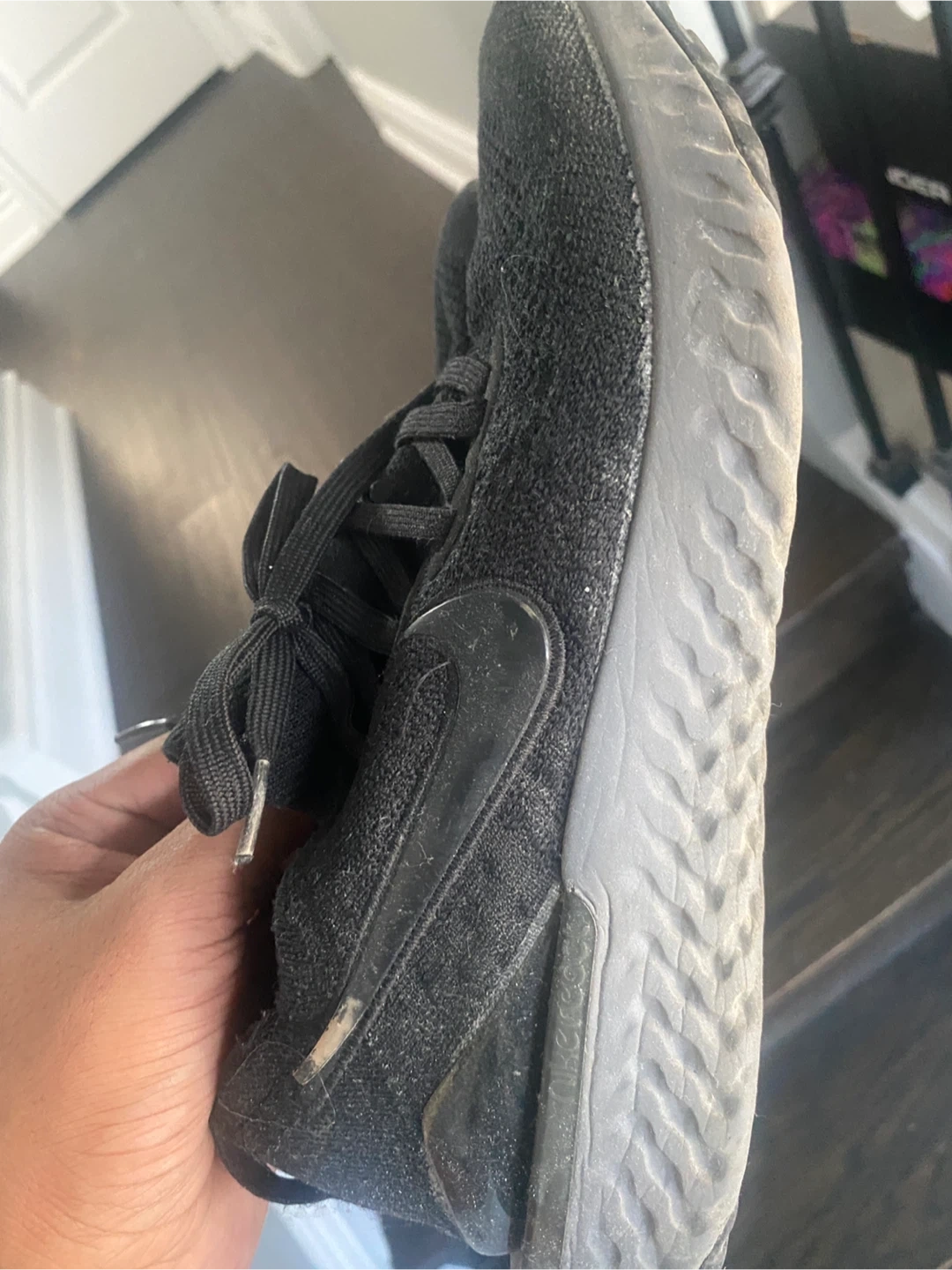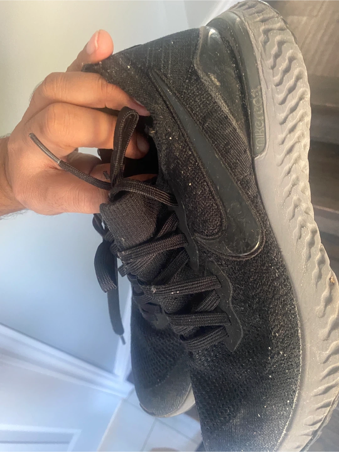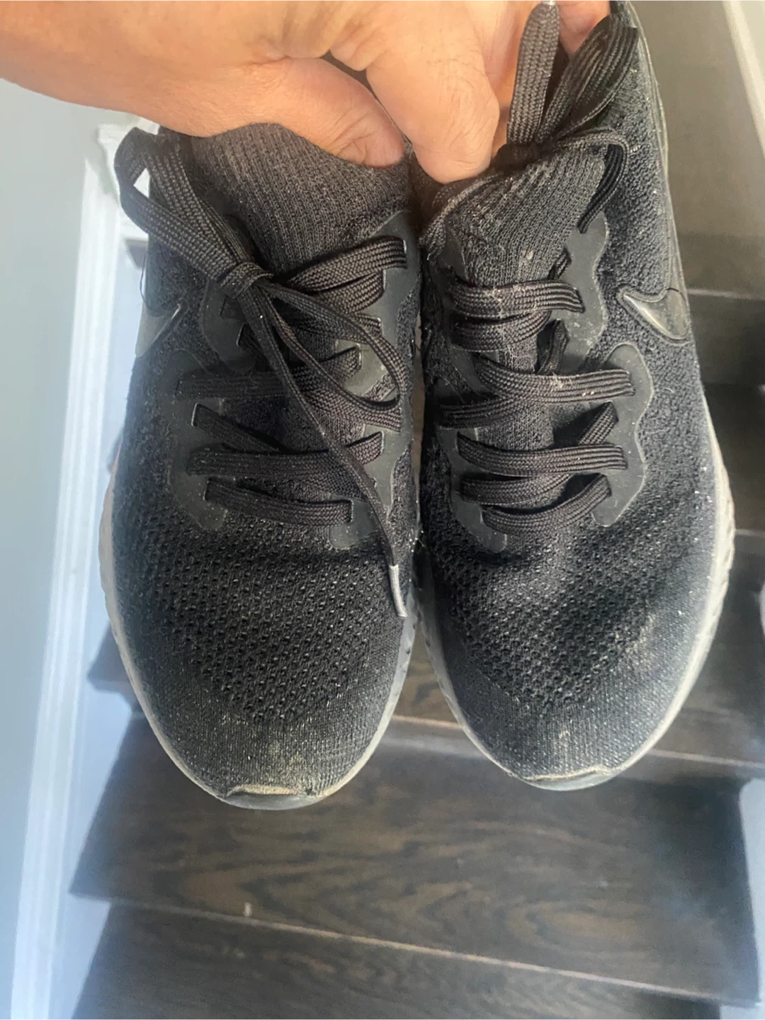 Selling a pair of Nike Epic React Flyknit in black. They are in used condition. The size is US 9.5.