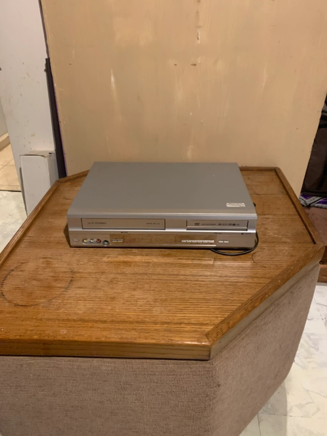 Selling a VCR/DVD combo player in good working condition. It's silver and has Hi-Fi Stereo. Perfect for anyone looking to enjoy their old VHS tapes or DVDs!