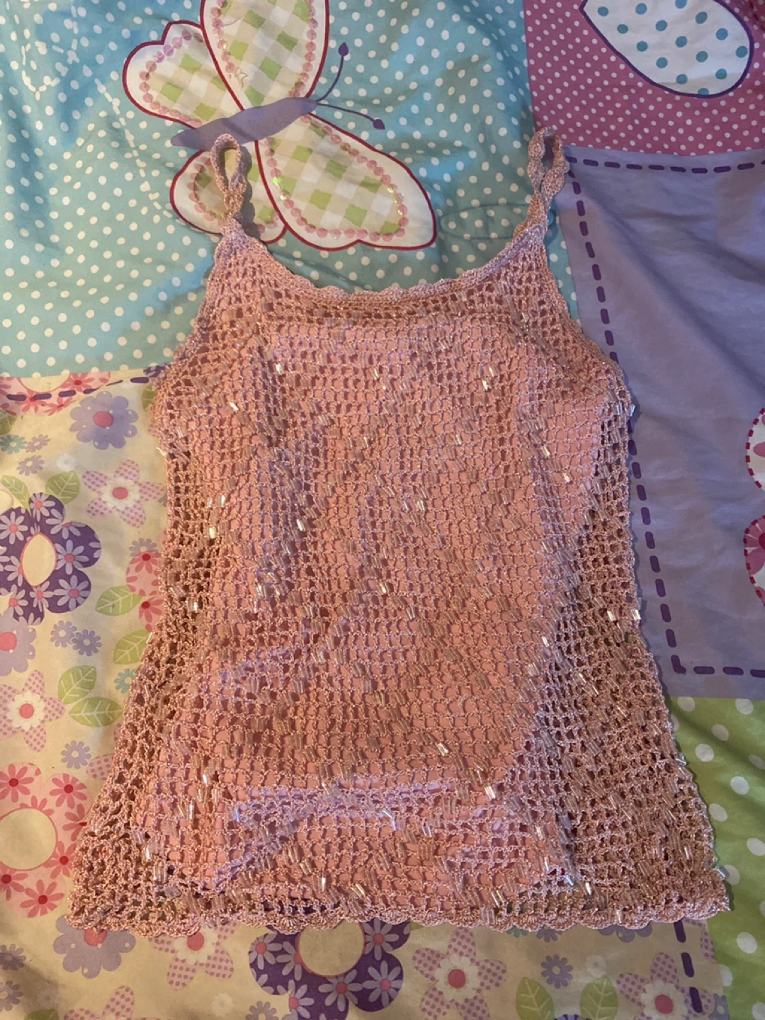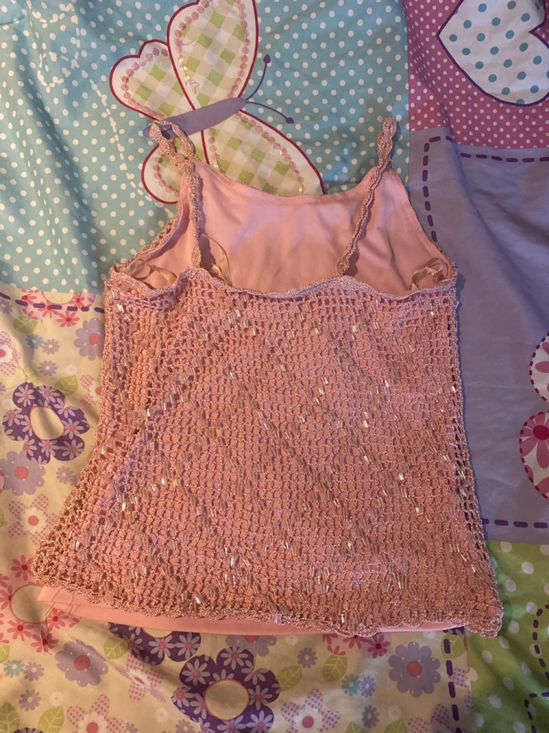 65Selling a cute pink beaded tank top! It's in great condition and perfect for summer. The detailing gives it a unique and stylish look. It's lightweight and comfortable, making it ideal for warm weather. A great addition to any wardrobe!