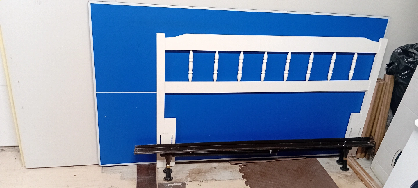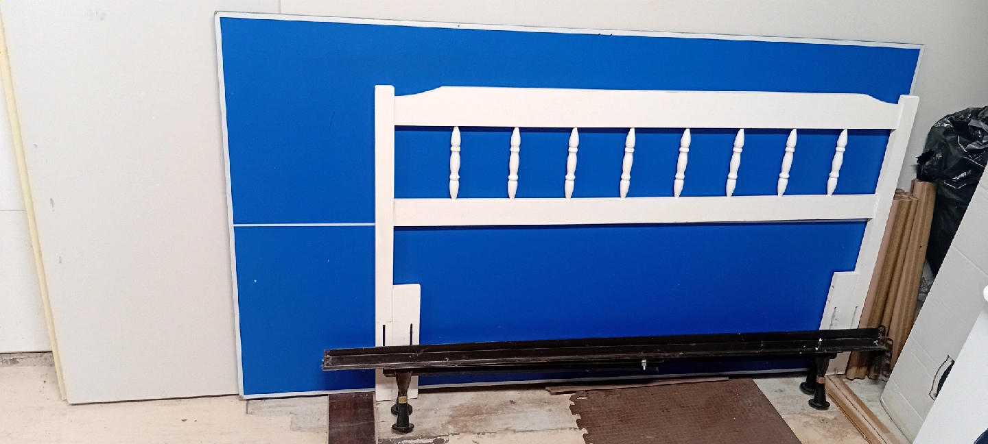 Selling a double white wooden Headboard and frame It's in good condition and ready to add a touch of classic style to your bedroom. Perfect for a double bed!