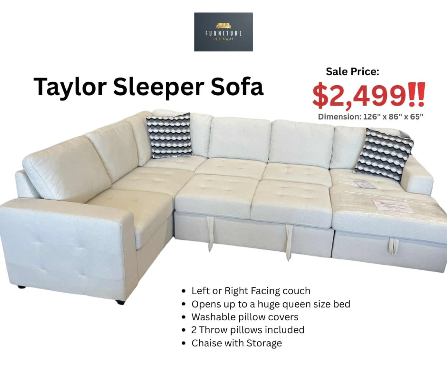 The Taylor Sleeper Sectional Couch is the perfect blend of style, comfort, and functionality, priced at $2499‼️