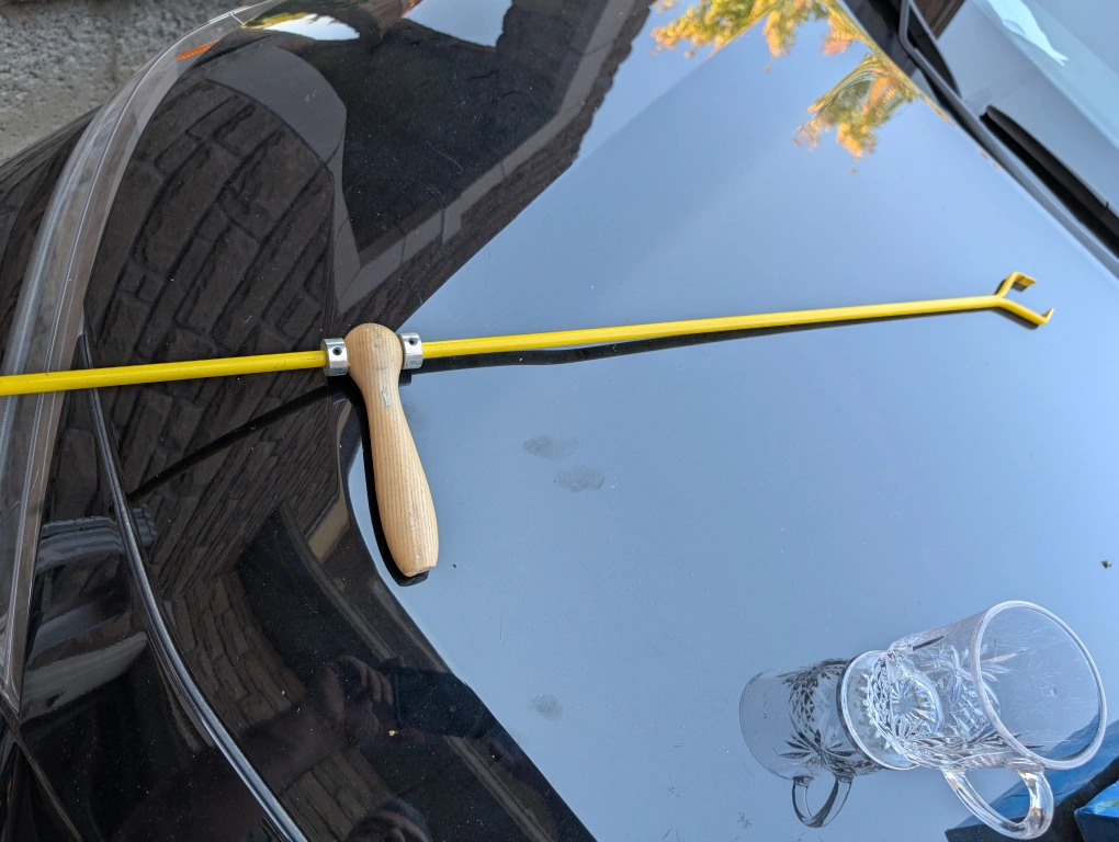224 feet long and a Handel for better handling the job.this tool come very handy for mixing concrete or paint or .........