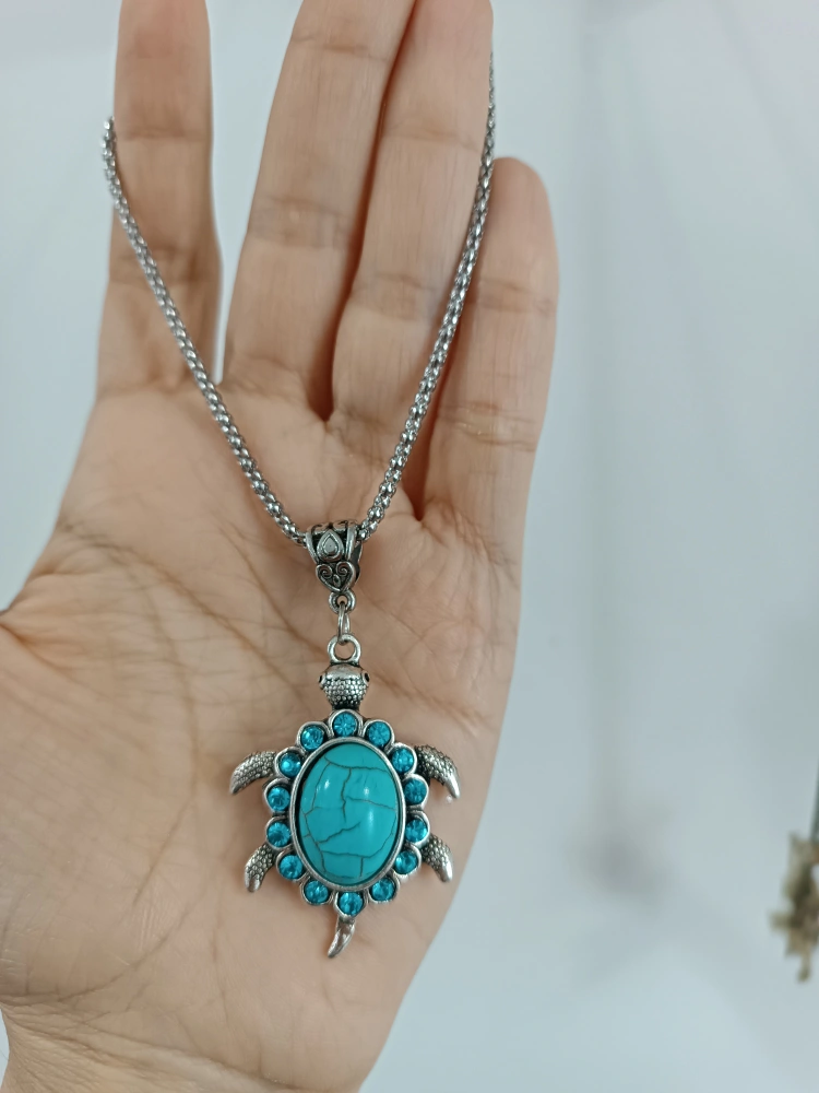 Turtle Pendant Necklace with Colorful Stones
