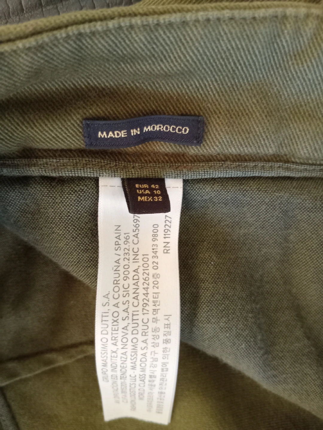 277These are a pair of Massimo Dutti pants in olive green. They are a size 10 (USA). Made in Morocco