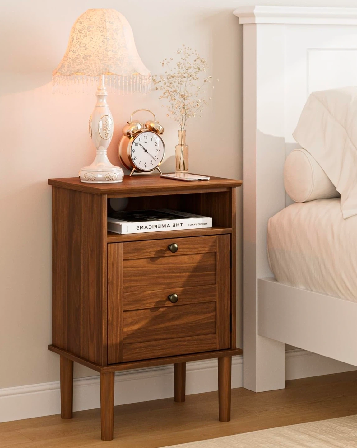 Brown Wood Nightstand With Storage