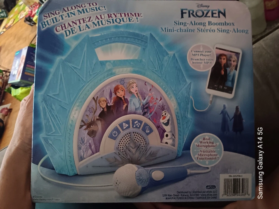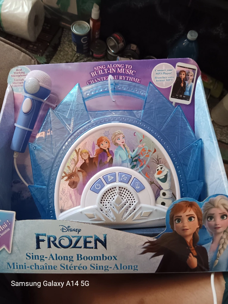 Get ready to sing your heart out with this Disney Frozen Sing-Along Boombox! It's a mini stereo system that comes with a real working microphone so you can perform all your favourite Frozen tunes. Connect your MP3 player and have a blast! one left $20 647-203-0411 Don Mills Rd and Sheppard Avenue East area Surrounded by highways 401 404 and the DVP Just south of Fairview mall and TTC station Don Mills Shipping and Delivery is an option for an extra cost depending on where you live Stay Safe God Bless Help save the animals and be nice to one another 🙏