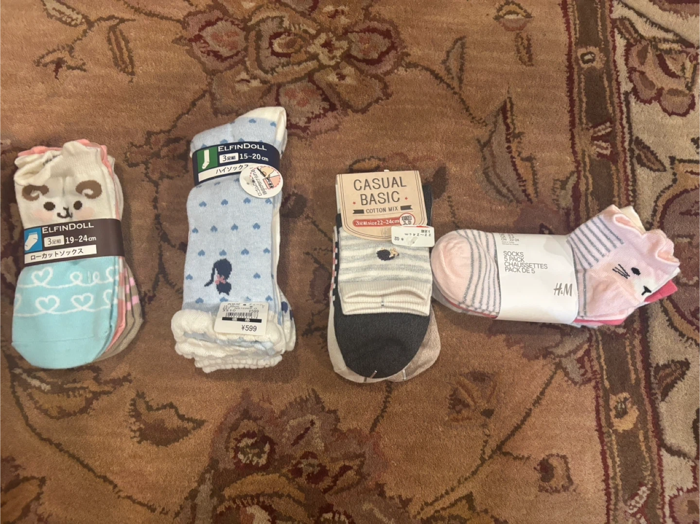 Selling a bundle of socks from Elfindoll and H&M! The Elfindoll socks come in a pack of 3, with sizes ranging from 15-24cm. The H&M socks are a pack of 5. Great for kids!