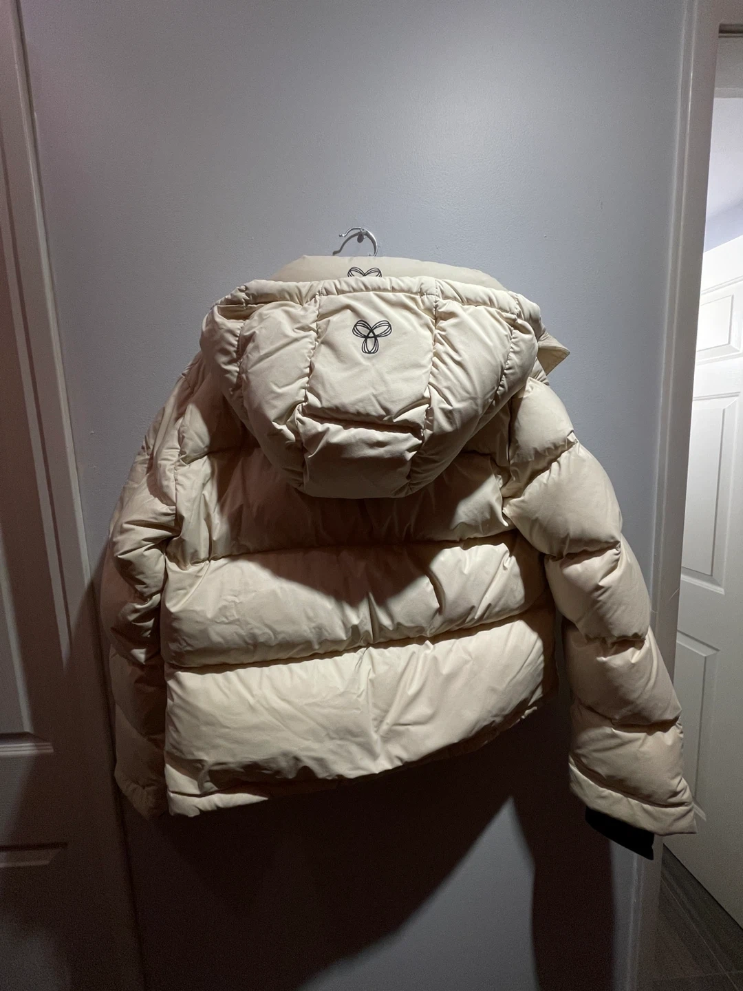 Selling a TNA Super Puff Shorty jacket in size XS. It's in brand new condition and perfect for staying warm this winter! The jacket is a beautiful off-white colour and made of high-quality materials. Warmth rating is -20 degrees Celsius / -4 degrees Fahrenheit. Detachable hood, cuffs with thumb holes. Water repellent and wind resistant.