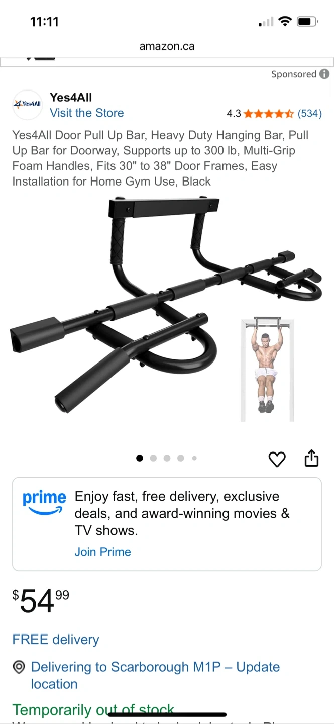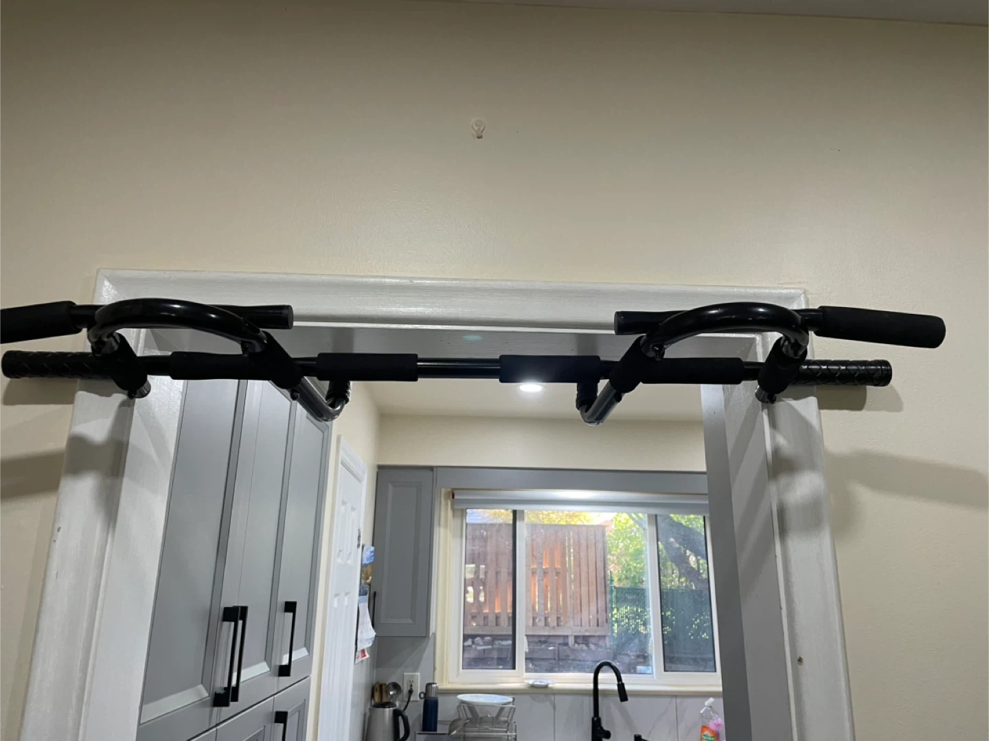 Door Pull Up Bar, Heavy Duty Hanging Bar, Pull Up Bar for Doorway, Yes4All Door Pull Up Bar, Heavy Duty Hanging Bar, Pull Up Bar for Doorway, Supports up to 300 lb, Multi-Grip Foam Handles, Fits 30" to 38" Door Frames, Easy Installation for Home Gym Use, Black Cash and pickup Location- brimley and Lawrence Thank you